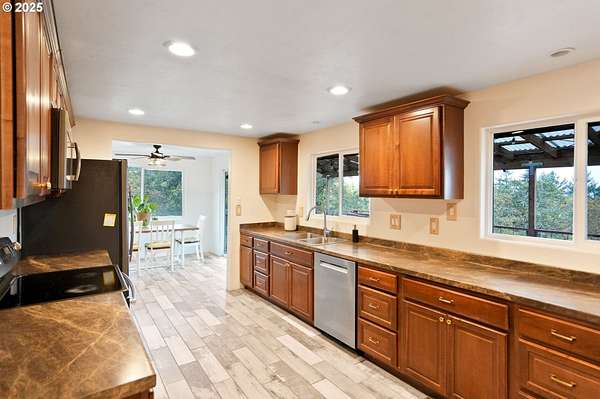Est $3,811/moCountry retreat on 4.97 acres with stunning valley views! This 4-bedroom, 3-bath home offers spacious multi-level living with a large living/dining area, oversized kitchen with pantry, and a generous bonus family room. Outside, enjoy a 1-acre fenced yard, fruit trees, grapevines, and a seasonal creek. Property features include two dog runs with additional enclosed space, a large two-story deck, RV parking, oversized garage, and tool shed. Equipped with a water holding tank and filtration system, plus irrigation lines connected to the well. Located in a peaceful neighborhood just 15 minutes from Eugene! Appointment required to view property.