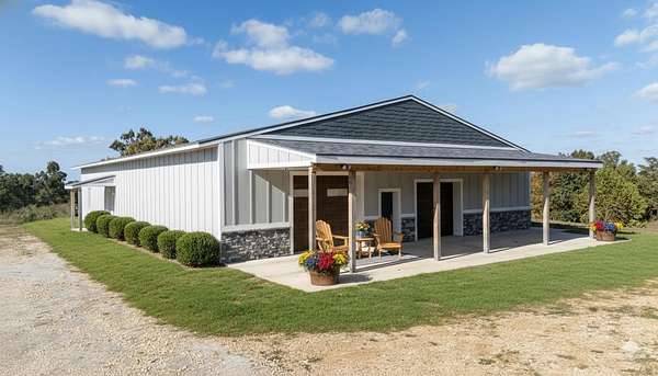 New construction 3-bedroom, 2.5-bath ICF home on 2.68 wooded acres just minutes from Grove. Built with 8'' steel-reinforced concrete walls from foundation to roof, offering exceptional energy efficiency, storm resistance, and soundproofing. Features include geothermal heating and cooling, radiant heated floors, 15kW solar with net metering (often generating electric credits), triple-pane windows, advanced air and water filtration, and a built-in ICF storm shelter/gun vault. Over 4,400 sq ft including garage/shop. A rare combination of durability, efficiency, and long-term performance.