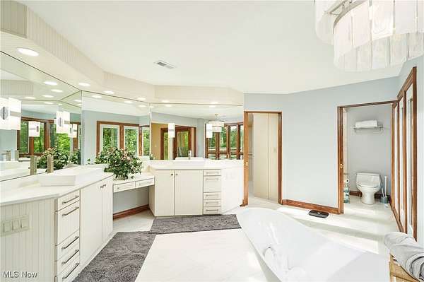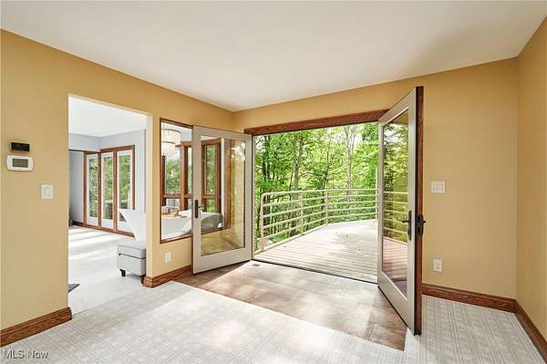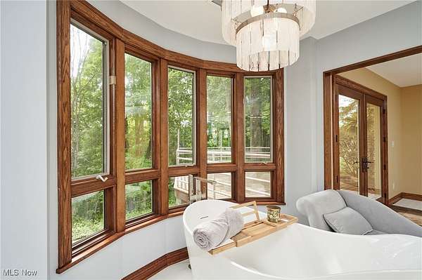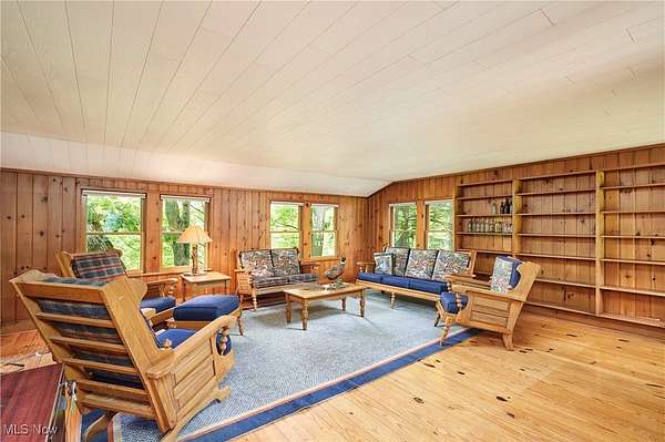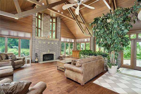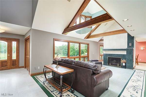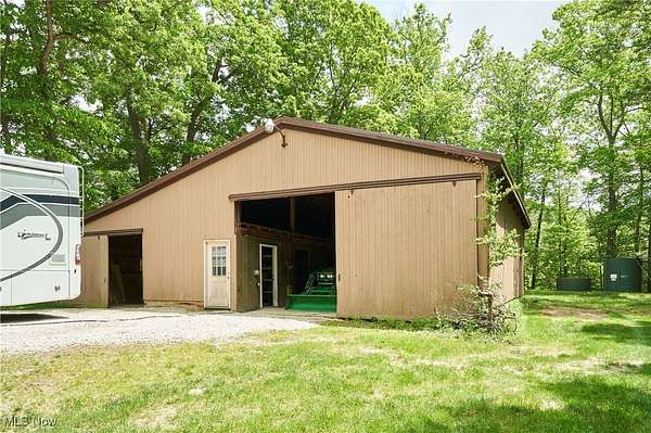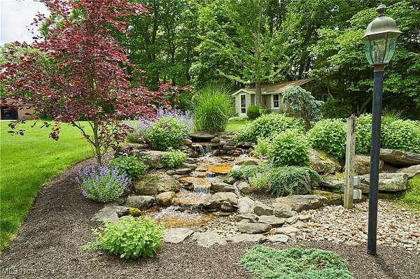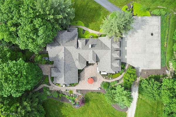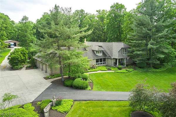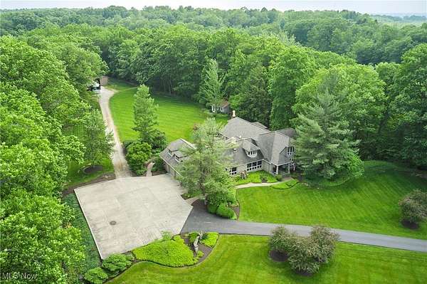 Incredible 20+ Acre Estate with the Main House, Guest Cottage, Cabin, & 6 stall horse stable located on the West Branch of the Rocky River. This home was built for the convenience of everyday living & extensive entertaining. Endless adventures await: camping next to the river, ice skating in the winter, football games in the front yard; all on your OWN property. The main house features 4 bedrooms & 4.5 Baths, including first-floor master suite w/180 degree views of this park-like property. The chef's kitchen is completely open to the family room w/woodburning FP, beamed ceiling, spa & wet bar. 2 separate staircases lead to the second floor w/3 spacious bedrooms & 2 full baths. Walkout lower level w/kitchenette, workout room & full bath. Laundry rooms on both the 2nd floor & Lower Level. French Doors throughout the home lead to multiple patios & decks, ideal for outdoor entertaining. Rear patio features built-in grill & beautiful waterfall feature. Guest cottage features 2 bedrooms, 1 full bath, full kitchen, and living room w/fireplace. The cabin features forced-air heating. Main House New Roof (2016), Guest Cottage New Roof (2020). Recent improvements include: New flooring (2025), renovated master bath (2025), kitchen remodel including new granite countertops, flooring, sinks/Kohler faucets, Viking range, dishwasher, wall oven, and microwave (2024-25), New tin roof on barn (2024), Added Generac Full Home Generator (2023), driveway resurfaced (2024), new Pella doors in kitchen and master bedroom (2025), New HVAC/AC & hot water tank in cottage.
