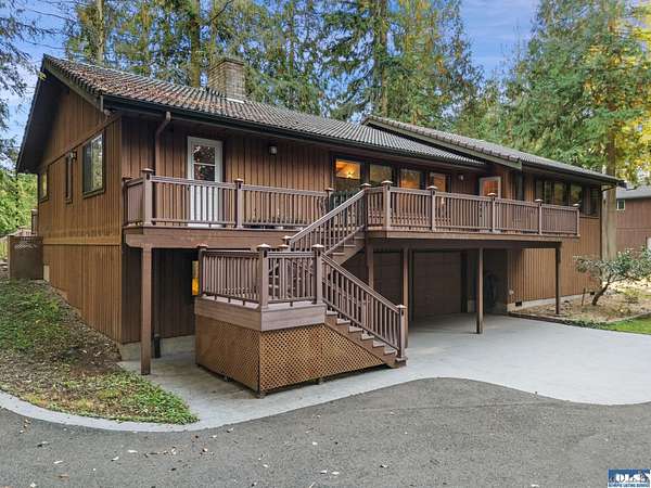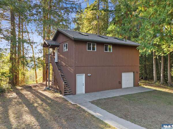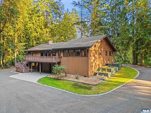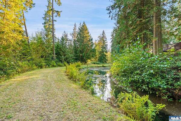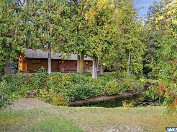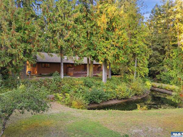 Tucked away between Sequim and Port Angeles, this serene property offers over 6 acres of privacy & abundant beauty and backs to DNR land for added seclusion and direct access to nature. Enjoy the meandering irrigation ditch and a tranquil pond nestled amongst the trees and take in the sounds of nature from your oversized deck. A detached garage provides generous storage plus a versatile upper-level art studio or hobby room--perfect for creative pursuits. Surrounded by towering evergreens and located near local trails, this is a rare opportunity for those seeking privacy, space, and connection to the outdoors.
