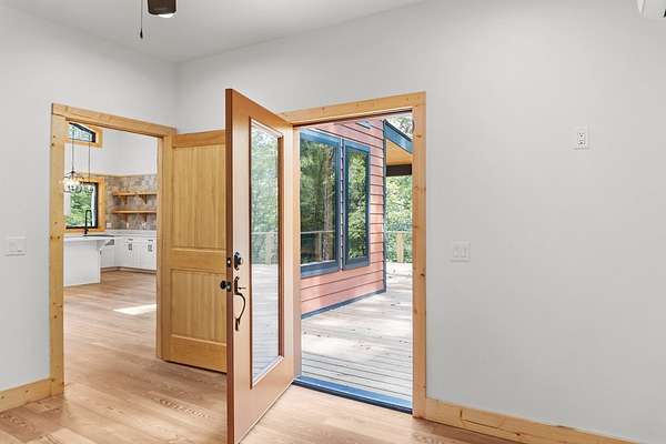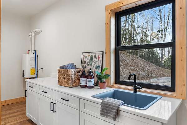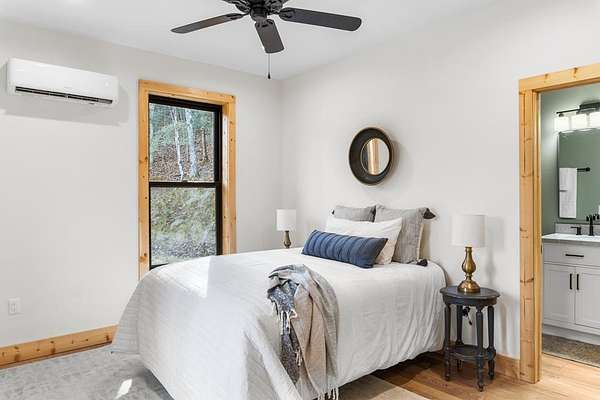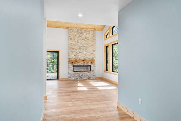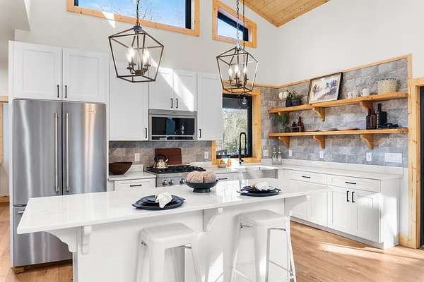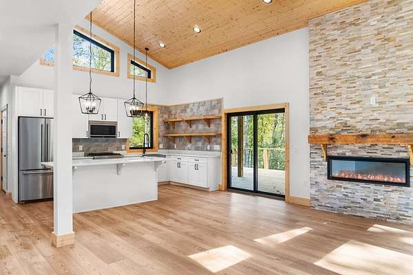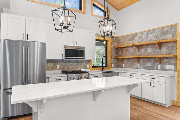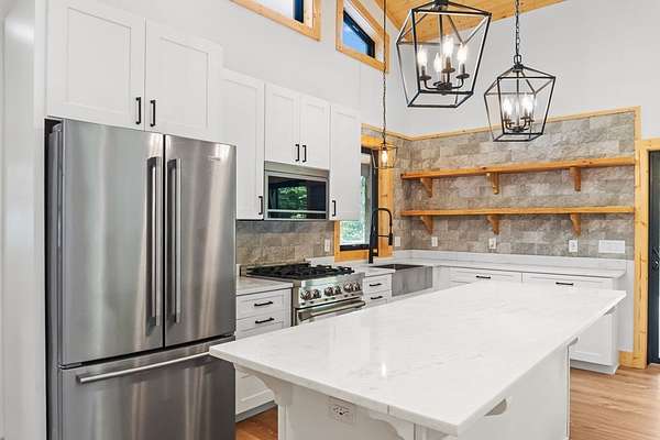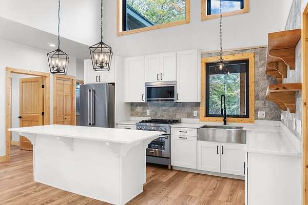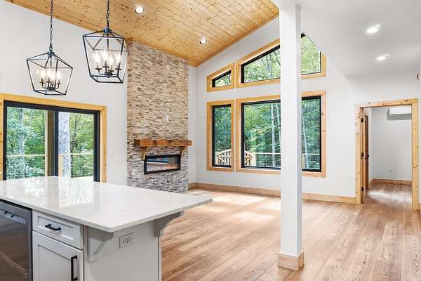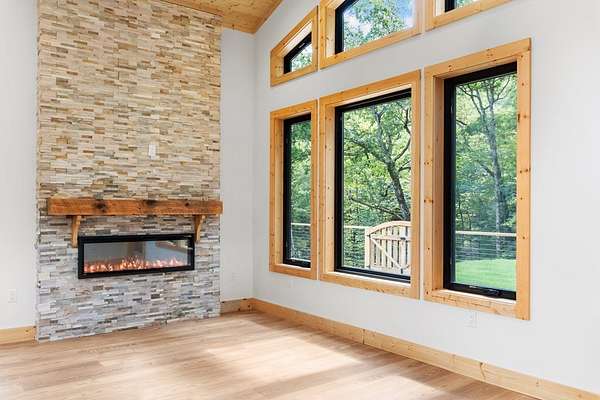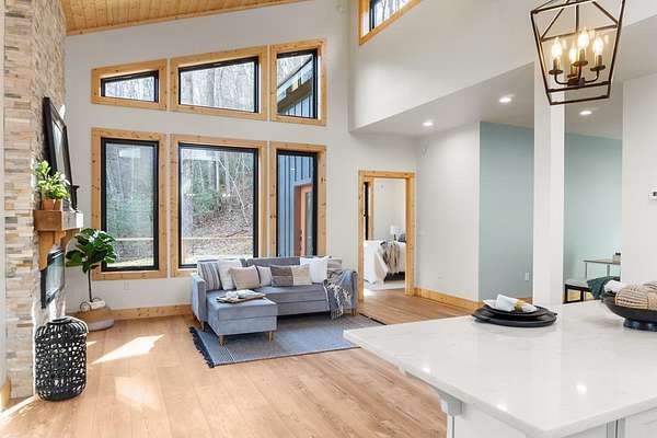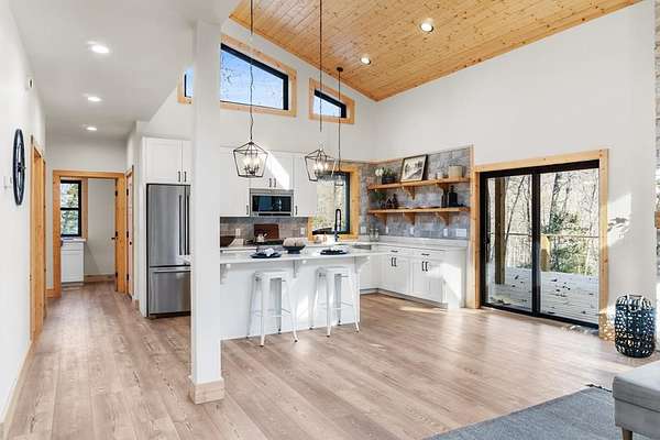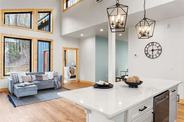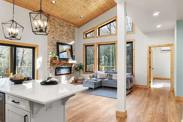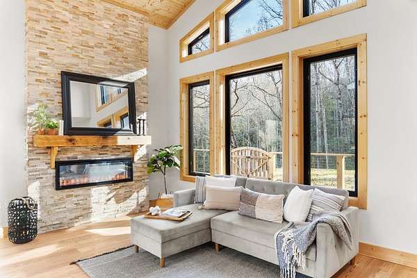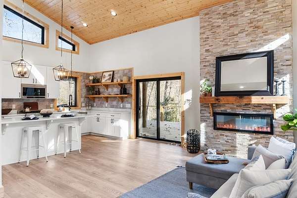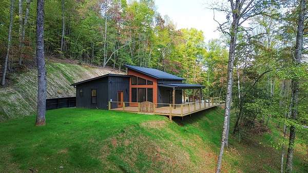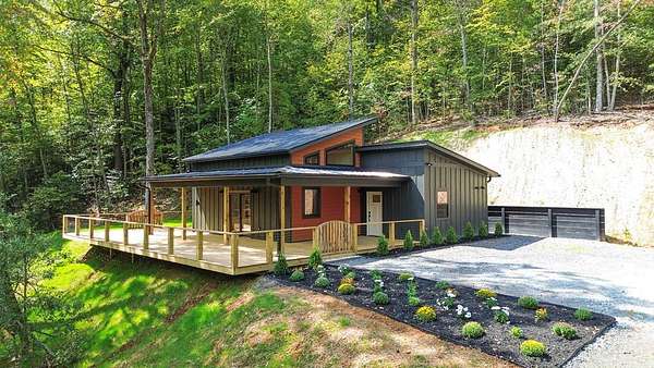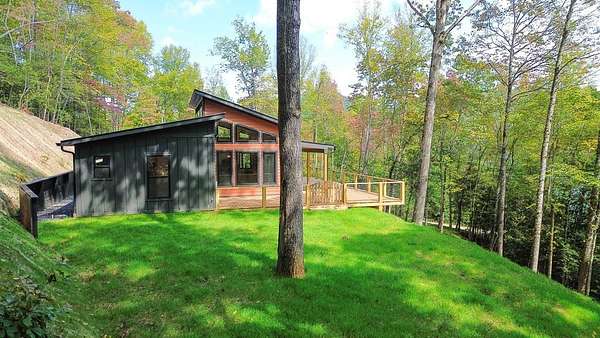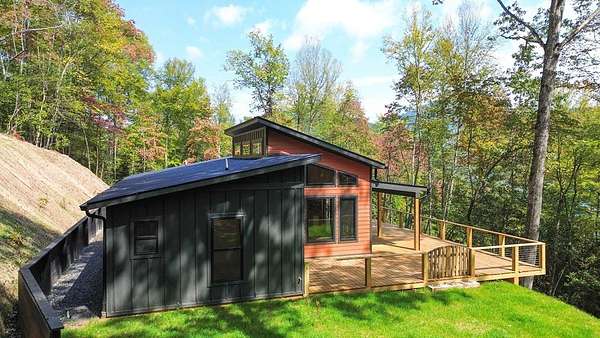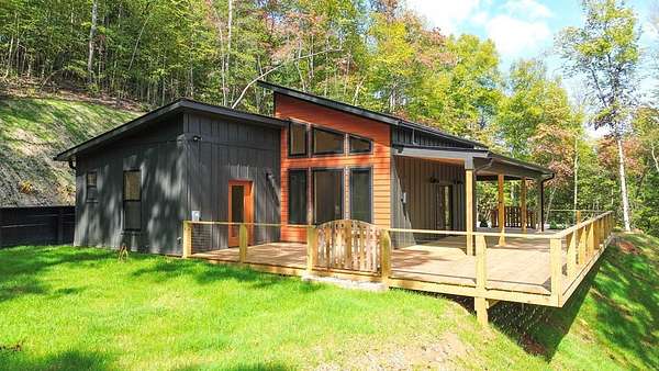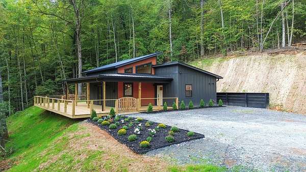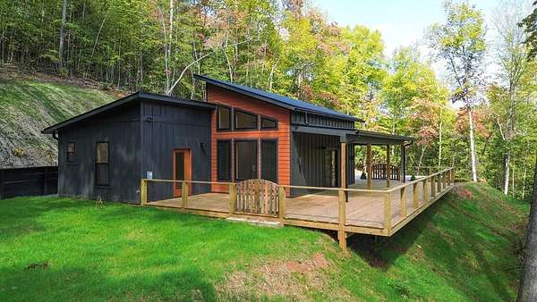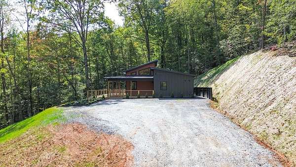 Nestled in the serene beauty of Burningtown, NC, this newly built 2025 modern cabin offers a harmonious blend of luxury and rustic charm. Set on 1.4+/- acres with stunning mountain views, this 2-bed, 2-bath home features an open floor plan, vaulted ceilings, and pine trim throughout. The kitchen showcases stainless steel appliances, marble countertops, and a large island with seating for six--ideal for entertaining. Cozy up by the ambient fireplace or step onto the expansive 1,100 sqft deck--partially covered for year-round enjoyment. Access to high-speed fiber internet makes it perfect for remote living. Thoughtfully landscaped with ample parking, this turnkey home is ideal as a primary residence, vacation getaway, or investment. Seller states future plans include a gated community entrance and a charming general store to enhance lifestyle and value. Don't miss this rare opportunity for modern mountain living with timeless appeal. Only 15 minutes from downtown Franklin and 45 minutes from downtown Highlands!