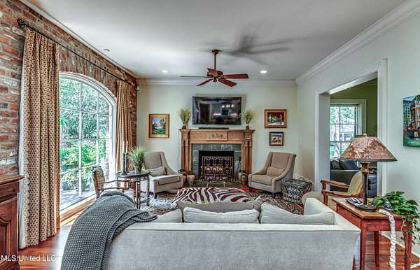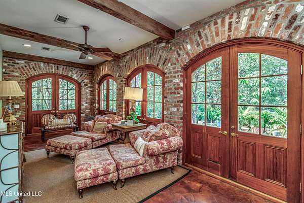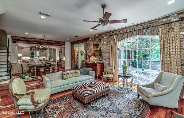 Step into a world of timeless design and unparalleled serenity with this exquisite home inspired by the iconic architecture of A. Hays Town. Nestled on two beautiful acres surrounded by old majestic oaks and mature landscape, this property offers a rare blend of classic craftsmanship, an unbelievable location and tranquil privacy! As you approach through the winding tree lined driveway, you will immediately feel peace and privacy of this serene haven. This home's classic features include antique brick, exposed beams, antique hardwood floors and a gorgeous loggia that seamlessly blend charm and sophistication while inviting personalization. Expansive porches, slate walkways and patio offer perfect spaces to relax, entertain and take in the lush surroundings. Open floor plan with gorgeous floor to ceiling picture windows throughout perfectly framing the natural landscape beyond. This is more than a home, it's a lifestyle. Don't miss your chance to own this extraordinary property that blends elegance, privacy and location without the expense of an HOA!! This residence is a true retreat from the everyday. Minutes from I-55 and premier shopping and dining at The Township and Renaissance off of Highland Colony. Pool, Landscape and Cook Station Plans available upon request!