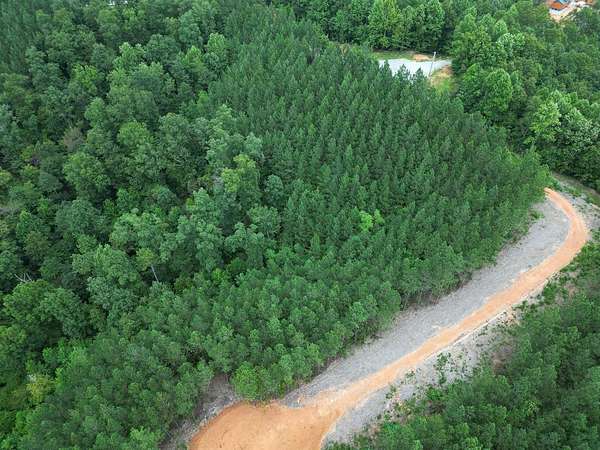 Lot 83 is a beautifully private 12-acre tract located at 338 Juniper Ln in The Woodlands at Buffalo River. Situated at the very end of a quiet cul-de-sac on a privately maintained road, this property offers exceptional seclusion and turn-key improvements already in place. A dog-leg style chert driveway winds deep into the lot, keeping the homesite completely hidden from the road. A cleared area with a chert-built RV pad is ready to use, and the overhead electric right-of-way has been cleared for easy utility access.