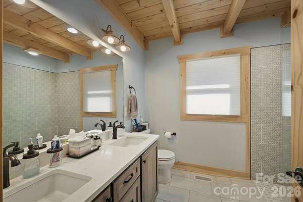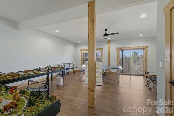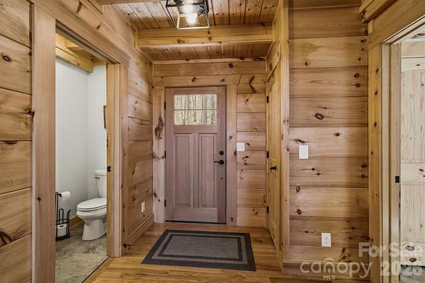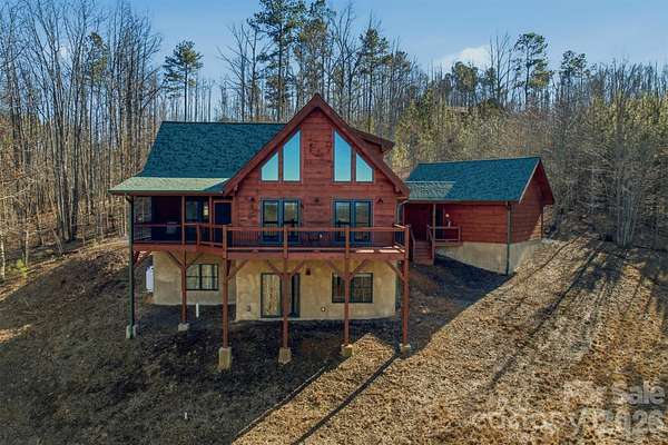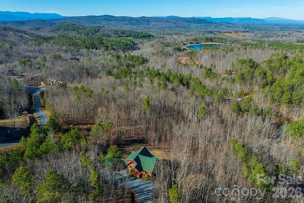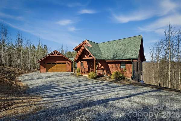 Tucked inside a gated community in the mountains of western North Carolina, this rustic cabin sits on 2.27 very private, wooded acres and offers a peaceful mountain lifestyle. Offered Mostly Furnished! Inside, the cabin-style home features an open floorplan with vaulted ceilings that create a bright, airy feel and highlight the natural wood details throughout. The home spans three levels, providing flexible living space for family, guests, or a home office. Large windows and outdoor living areas capture beautiful mountain views, making it easy to enjoy the scenery year-round. The main living area offers a gorgeous kitchen with an eat-in island, a dining area, and a welcoming great room centered around the gas fireplace. Located on the main level, the primary bedroom has a walk-in closet, en-suite bathroom and direct access to a screened porch to start your day with coffee and calm. Upstairs you'll find an open loft, two spacious guest bedrooms and a full bathroom. The basement offers a huge open den, a 4th bedroom and 3rd full bathroom, not to mention plenty of storage space in a separate utility room. The detached 2-car garage is connected by a covered breezeway, leading to the laundry/mud room. Quiet, private, and surrounded by nature, this home works equally well as a full-time residence or a mountain getaway. The neighborhood is active with dozens of social and hobby groups meeting weekly. Go for a swim in the community lake or cast a line from the shore to hook a rainbow trout or small-mouth bass for dinner. There's 5 miles of nature trails for hiking with many picnic spots along the way including an overlook for a beautiful natural waterfall. This community captures the "away from it all" feeling while being conveniently located just 15-20 minutes from two charming small towns and less than an hour to downtown Asheville. Start living the life you dream of in this exceptional mountain home!