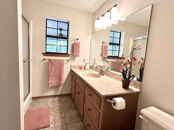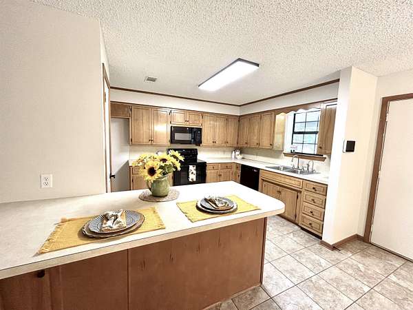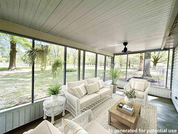 A little slice of heaven right at the edge of town. This immaculate, well-maintained home sits on two + fenced acres with a shop, garden spot, mature oaks, fruit trees and a pond. What a great place to come home to! It features a relaxing screened in porch where you can hear the whipporwills and owls in the evening and no sound of traffic. Great for entertaining with a fire pit, horse shoe pits, and a brand new dock for fishing! The shop is 30x30, two bays with hoist and work benches. it's heated and cooled with a mini-split, has new exterior paint and rubber coated roof. RV parking with hook ups and direct line to sewer disposal. The home has been freshly painted inside. The light fixtures are updated. The eat-in kitchen features a breakfast bar, pantry and new appliances. The primary bedroom is spacious, features a walk-in closet and full bath with sit-down shower. No carpet! The laminate and tile floors are easy to maintain. Metal roof approximately 6 years old. See associated docs for more information on the wonderful home!