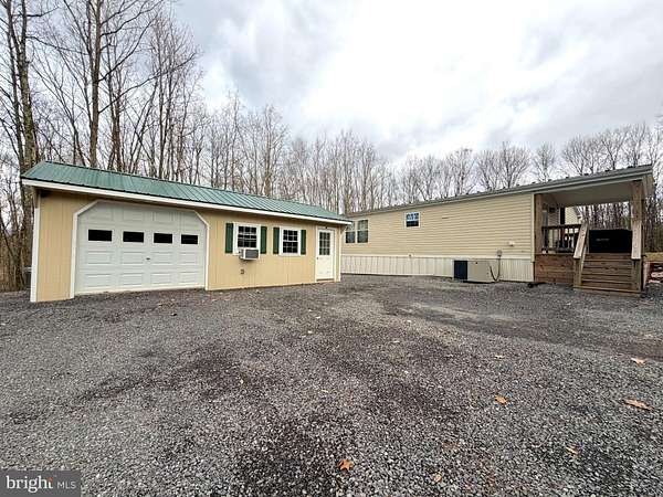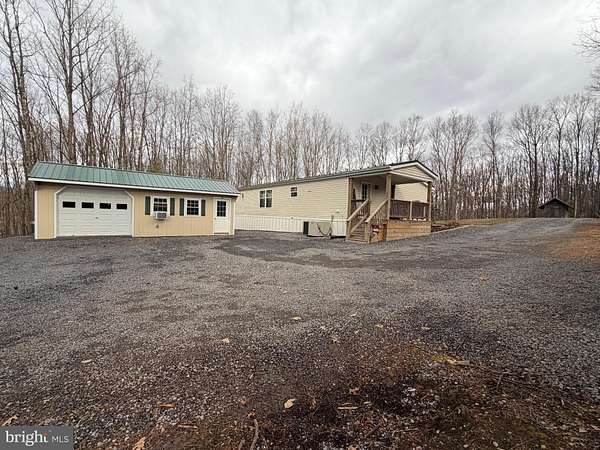 Nestled in a rural and private setting, this well-maintained 3-bedroom, 2-bath double-wide sits on 12.35 acres of unrestricted land, offering space, serenity, and incredible mountain views from the open field. Enjoy outdoor living on two covered porches built in 2019, perfect for relaxing and taking in the peaceful surroundings. The property features multiple outbuildings with electricity providing excellent storage options, along with both a main and secondary driveway for easy access and convenience. An outdoor wood furnace with electric backup furnace, central air, and a new metal roof (2019) add comfort and efficiency, while the water heater was also replaced in 2019. Low-maintenance rubber mulch surrounds the home and play area, offering durability with no upkeep. All appliances convey, including the washer and dryer, making this home truly move-in ready. This property is enrolled in the Clean & Green program, providing significant tax savings with annual taxes of only $1,789. Ideal for recreational use, the land is rich with wildlife, including deer, turkey, bear, and more, making it a perfect retreat for nature lovers, hunters, or anyone seeking privacy and wide-open space.