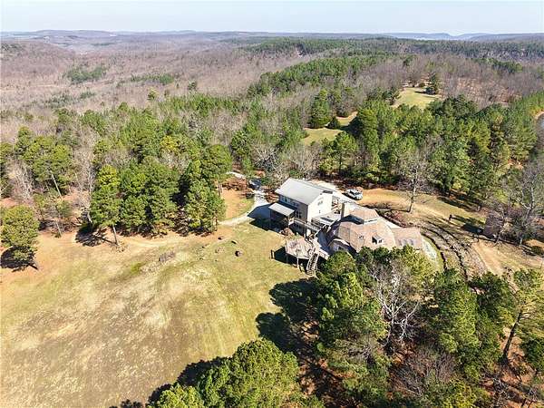 Multiple residences for over 10,000 square foot total Rare 400 acre offering in the heart of Newton County, Arkansas featuring an exceptional combination of improvements and natural beauty. The property includes five homes, multiple unfinished cabins ready for completion, several water wells, a large insulated barn, airplane hangar, and a 1,720-foot private landing strip for convenient fly-in access. The land showcases classic Ozark terrain with a mapped cave, stunning natural bridge, and at least seven ponds providing abundant water throughout the property. Wildlife is plentiful with frequent sightings of deer, turkey, and other native species. Ideal as a private family retreat, multigenerational compound, hunting property, or potential resort destination. Opportunities like this are rarely available in Newton County. Experience the privacy, recreation, and natural beauty the Ozarks are known for. A must see.