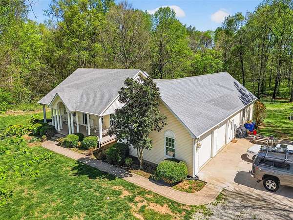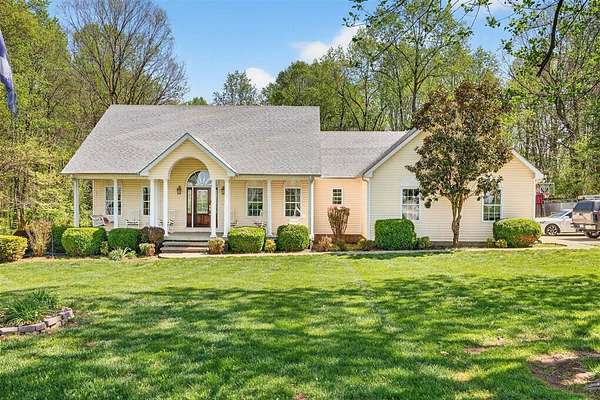 Beautiful country home! Homes in this location rarely come available! Nestled on nearly 5 acres in the country, this property offers a stunning setting with the perfect balance of open space and wooded privacy. From the moment you arrive, you’ll appreciate the mature trees, beautiful landscaping, and the peaceful surroundings. Enjoy both covered front and back porches, ideal for taking in the views year round. This 4 bedroom, 2.5 bath home offers approximately 2,043 sq ft with a well designed layout and quality finishes throughout. Inside, you’ll find vaulted ceilings, a gas log fireplace, and a seamless blend of hardwood and tile flooring. The kitchen features a bar area for seating, perfect for entertaining or everyday living. The primary suite is a true retreat with a newly tiled walk-in shower, double vanities, and a walk in closet. A 2-car garage adds convenience, while the setting and layout offer both comfort and privacy. Properties offering this much land, setting, and quality are hard to find! Don’t miss your opportunity to make it yours!