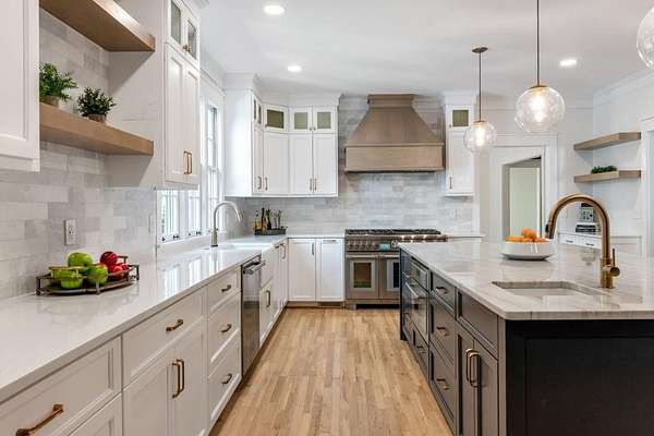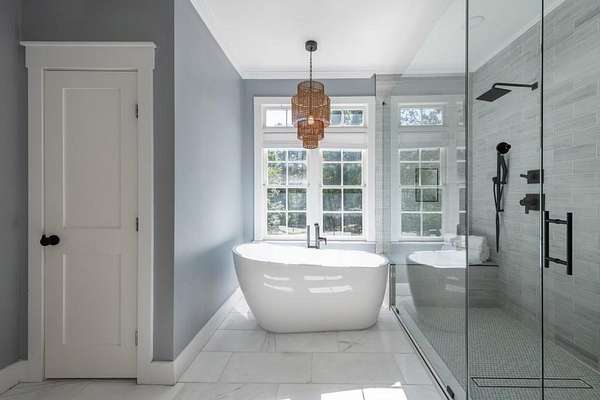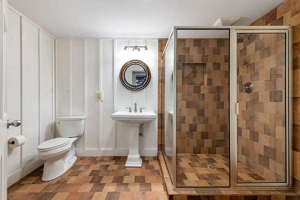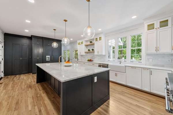 Beautifully Renovated Home on 2 Private Acres Nestled on a serene and wooded 2-acre lot, this beautifully renovated home offers luxury, privacy, and thoughtful design throughout. With 5 spacious bedrooms and an abundance of flexible living spaces, it's perfectly designed for both everyday living and elegant entertaining. The chef-inspired kitchen is a true showpiece, featuring all-new custom cabinetry and top-of-the-line Thermador appliances, including a 48" range, 48" built-in refrigerator, two refrigerator drawers, microwave, and premium dishwasher. The touchless Brizo main faucet and additional prep sink elevate the culinary experience, while the oversized center island creates the perfect gathering space for family and friends. A walk-in pantry with custom built-ins ensures exceptional organization. Refinished hardwood floors flow throughout the main level, complementing the home's bright and inviting atmosphere. The primary suite on the main level is a private retreat featuring a spa-inspired bath with a soaking tub, separate shower, and an oversized walk-in closet complete with custom cabinetry and a center island. Upstairs, you'll find four additional oversized bedrooms, each with its own walk-in closet, offering ample space and comfort for family or guests. A wide hallway provides a beautiful gallery-style wall to showcase your favorite artwork, adding an elegant touch to the upper level. A private bonus room with rear stairs offers even more flexibility ideal for a media room, home gym, or creative studio. The finished terrace level includes a second full kitchen, making it perfect for entertaining, guests, or extended family. Step outside to enjoy the screened-in porch and open deck, both overlooking the sparkling pool and peaceful wooded views the ultimate setting for relaxation and outdoor gatherings. A true highlight of the property is the detached three-car garage, complete with an EV charger, a finished studio/game room above, and a full bathroom on the garage level. With wide-plank pine floors, pine walls and ceilings, and a wood-burning fireplace, this versatile space offers unmatched charm and functionality for recreation, work, or leisure. Additional features include smart home technology with integrated lighting, security, and climate control systems for ultimate convenience and peace of mind. The professionally landscaped grounds provide an inviting backdrop for relaxing by the pool or hosting memorable gatherings with friends and family. From top to bottom, this home showcases thoughtful renovations, high-end finishes, and serene privacy a rare opportunity to own a truly exceptional property in the exclusive enclave of homes off Hill Road.