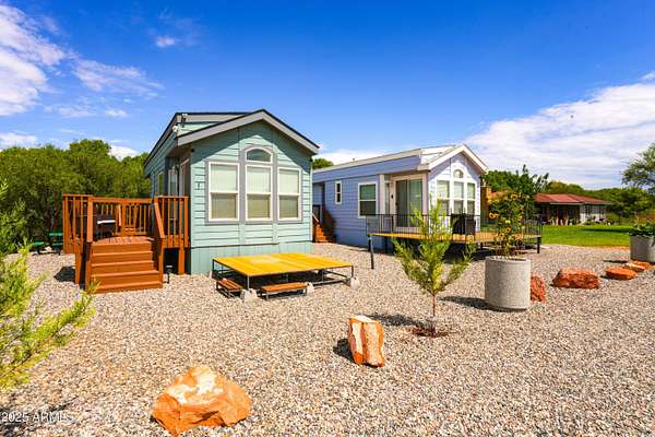 Discover a one-of-a-kind riverfront property and income opportunity in Camp Verde, Arizona. This exceptional 14.8-acre offering includes a beautifully updated 2-bedroom, 2-bath residence along with a fully permitted agri-tourism RV resort. The 1,697 sq ft home was tastefully remodeled in 2019, featuring stained concrete floors, a durable metal roof, and a detached two-car garage with solar panels. Unique additions such as a dedicated boathouse and a concrete wine cellar add both charm and functionality to this private retreat. Beyond the residence lies a thriving RV park approved for 30 spaces, with 17 currently developed-15 RV sites and 2 park model units. The RV village offers amenities including a coin-operated laundry facility, direct river access, and the security of pre-1919 water rights. Importantly, most of the property is located outside the floodplain, offering peace of mind and ample space for future expansion. With its agri-tourism permit already in place, this property presents a turnkey opportunity for income with limitless potential. Whether you envision expanding the RV resort, adding kayak rentals, tent camping, farm-to-table dining, small-scale farming, or wellness retreats, this riverfront gem is ready for your vision.