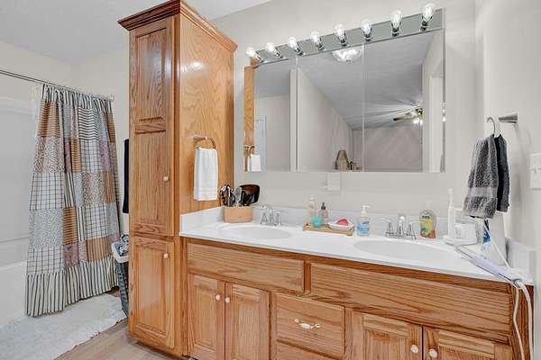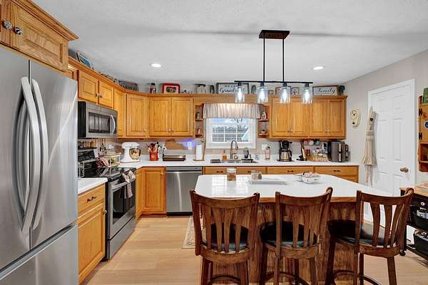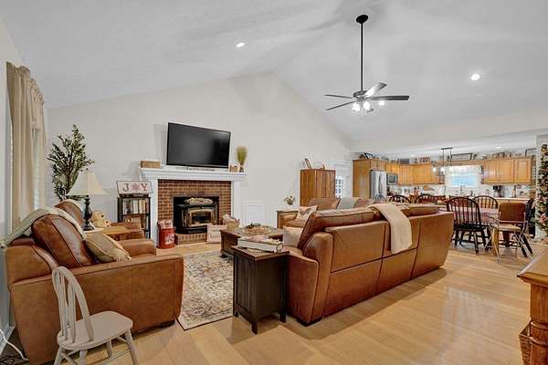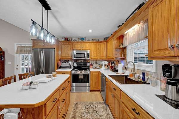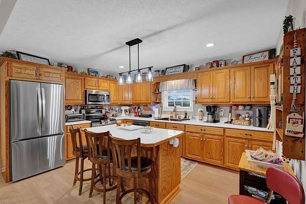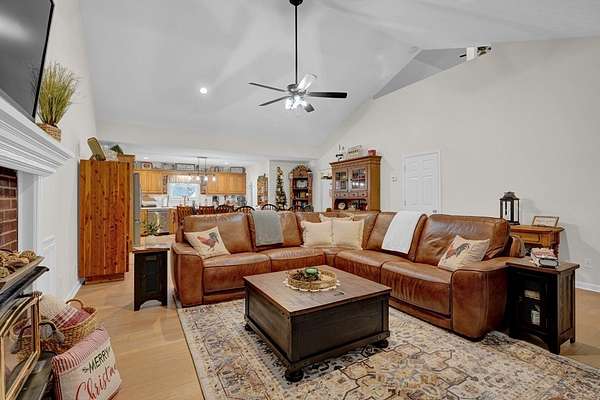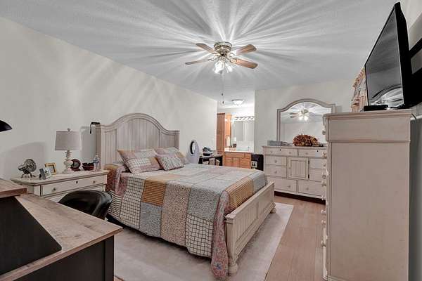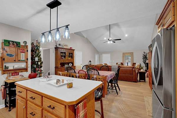 - Cathedral Ceiling, Ceiling Fan(s), Floors-Laminate, Garage Door Opener, Island, Pantry, Split Bedroom