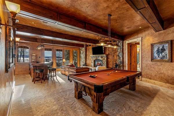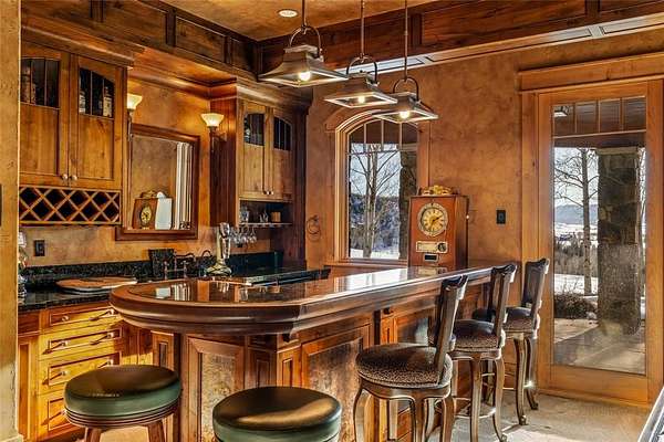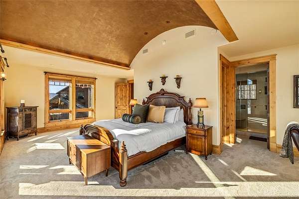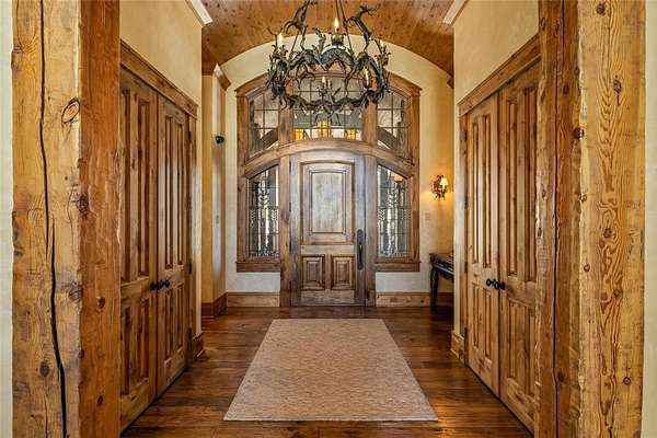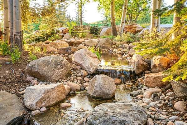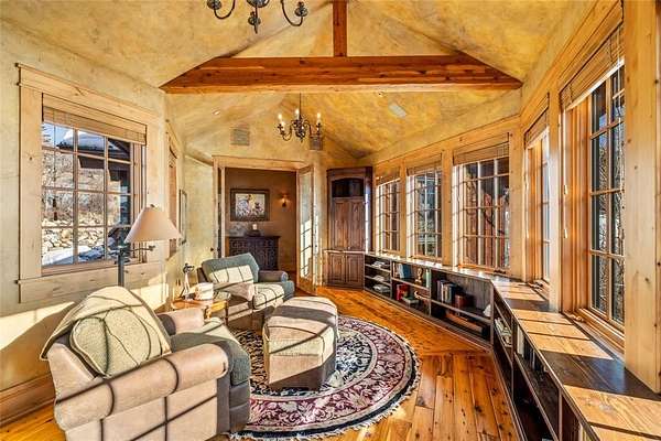 Set on 7 private acres overlooking the 7th fairway of Catamount Ranch & Club, the Covered Bridge Estate is one of Steamboat Springs' most architecturally significant residences, with sweeping South Valley and mountain views. Designed by architect Joe Patrick Robbins and meticulously constructed over three years, the home is offered fully furnished and reflects an exceptional level of craftsmanship, scale, and material depth. Named for its signature covered bridge entry, the residence blends European influence with hand-built stone and timber construction, featuring oak, pecan, and pine flooring and 400 tons of natural stone throughout. Vaulted 30-foot ceilings soar above the great room, featuring a full-height stone wall with fireplace, one of 5 throughout the home, extending to an outdoor terrace with sweeping views. The newly remodeled chef's kitchen includes a prep area, expansive center island, dual appliances, built-in Miele coffee system, breakfast nook with panoramic views, an adjacent hearth room and outdoor grilling deck. Designed for true main-level living, the primary suite with partner baths and dressing rooms, office/library, kitchen, dining, and living areas are all on the first floor. Additional bedrooms, including a second ultra-private primary, include ensuite baths and private patios, ideal for guests or multi-generational living. Designed for entertaining and wellness, the ground floor features an exquisite wine cellar, 10-seat home theater, expansive game and living room with a fireplace and bar, fitness studio, and spa with steam shower, sauna, cold plunge, and dual baths. Outdoor spaces include multiple terraces, landscaped gardens, cascading water features, a snowmelt driveway, and a 4-car garage. Located minutes from the Steamboat Ski Resort and downtown, The Covered Bridge Estate offers architectural distinction, privacy, and enduring craftsmanship in one of Steamboat's most coveted settings. Seller financing available. BTC accepted