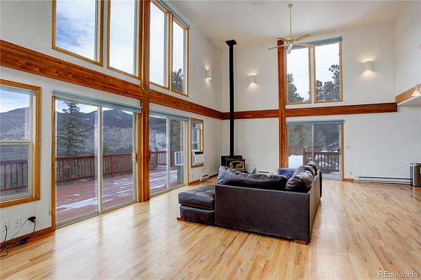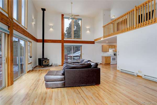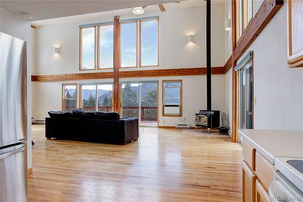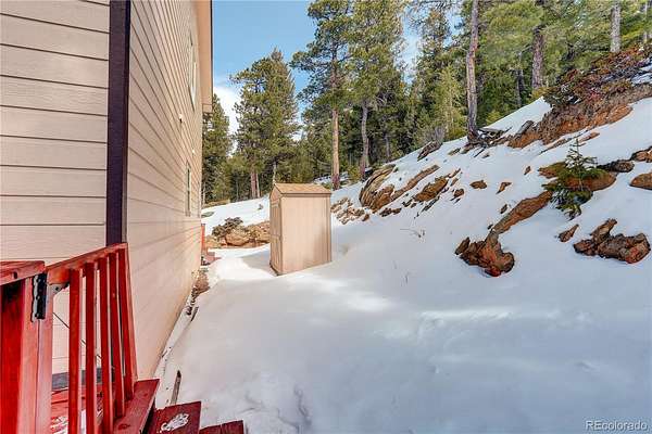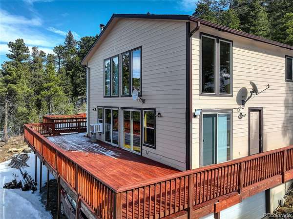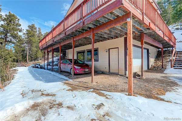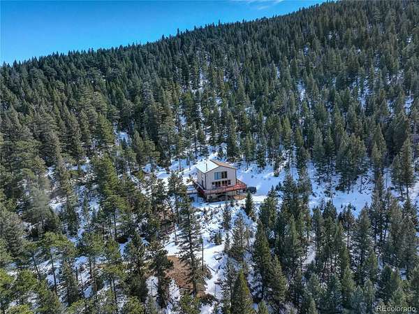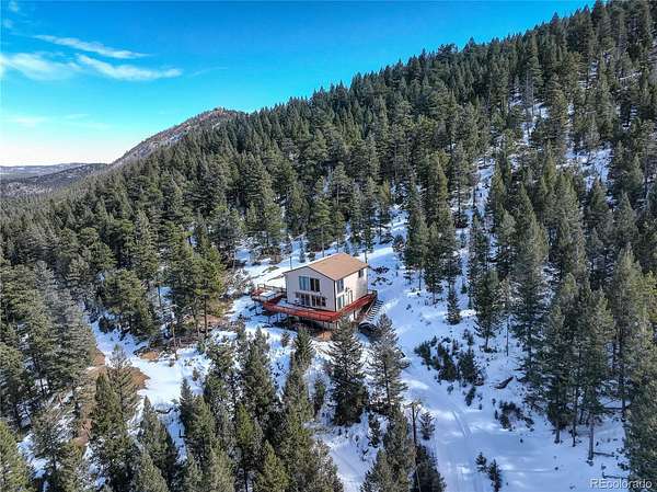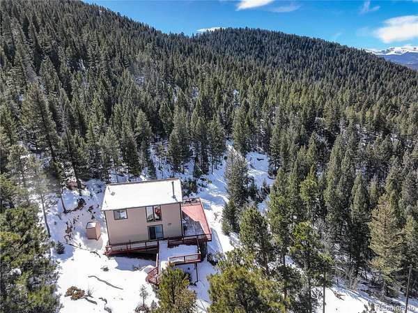 Discover this charming 2-story mountain hideaway perched high above Upper Bear Creek Road, offering spectacular views overlooking the Evergreen Valley. Sitting at an elevation of approximately 8,000 feet, this unique property includes both the main home and a second lot—together totaling over 7 acres—and backing to 700+ acres of open space and Denver Mountain Park.