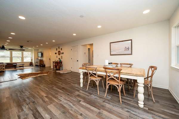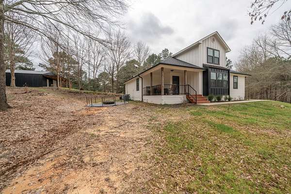 This stunning two-story home, built in 2009, sits on 5+ peaceful acres in the highly sought-after Hallsville ISD and offers the perfect blend of modern comfort and serene country living. Featuring four bedrooms and three bathrooms, the home showcases an open-concept layout with beautiful finishes throughout. The spacious kitchen includes an inviting eat-in dining area, stylish countertops, and ample cabinet space, making it ideal for both everyday living and entertaining. A cozy wood-burning fireplace anchors the living area, while large windows flood the home with natural light. Step outside to the gorgeous porch, where you can relax and take in the scenic views of the surrounding acreage. The property also includes a well-equipped shop, providing plenty of space for storage, hobbies, or projects. This exceptional home offers privacy, functionality, and charm in a desirable school district.