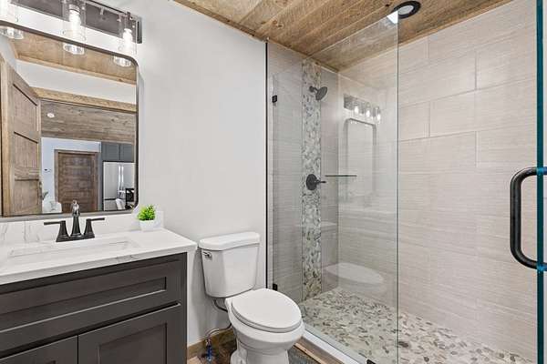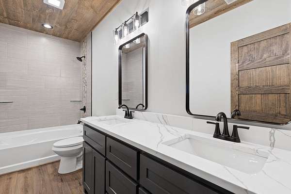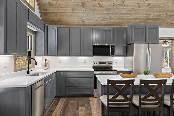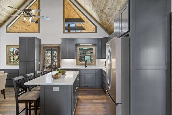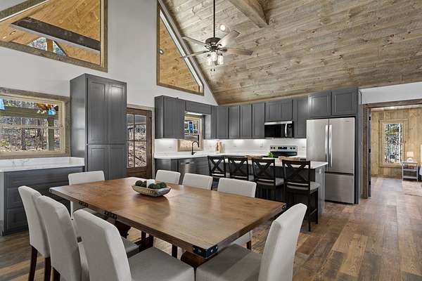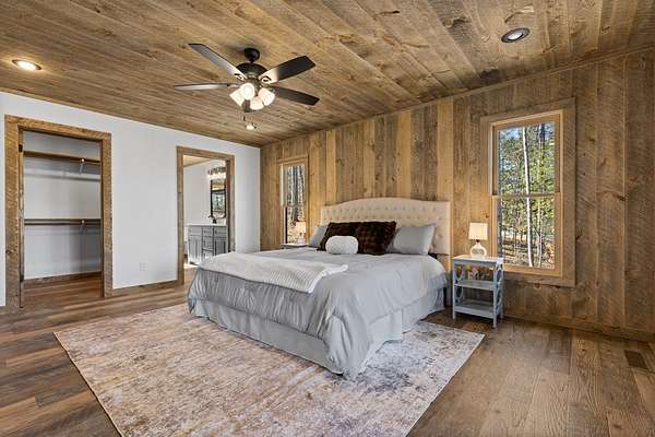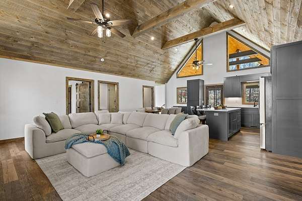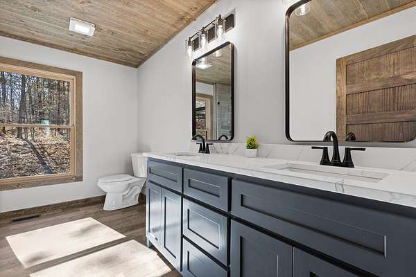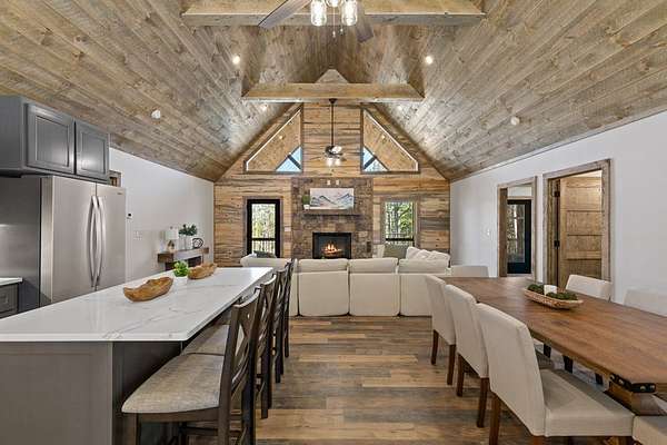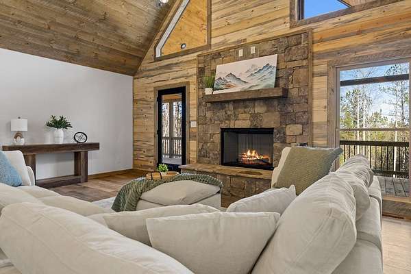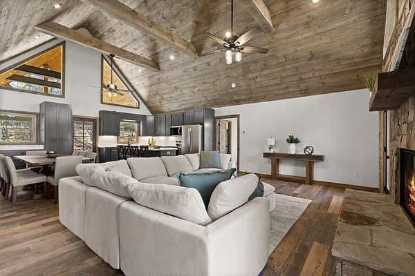 STR friendly! Professional pictures coming soon. This new construction, traditional Craftsman-style home with a seasonal mountain view is just 14 minutes from downtown Blue Ridge. This home is on a quiet, paved road with very little traffic.The exterior is an engineered wood with low maintenance. Featuring a level terrain, the 4-bedroom, 4-bath home (3 are ensuite) showcases quality craftsmanship with premium finishes, rich wood accent walls, circle-sewn wood ceilings, elegant fixtures, and a carport with real stone entrance. The spacious main level has an open-concept layout featuring a beautiful kitchen with stainless steel appliances, ample custom cabinetry, granite surfaces, real stone fireplace, a laundry room, and a covered deck with real stone fireplace. The main level includes two ensuites. The primary suite is a luxurious ensuite with an oversized tile shower with tub inside dual head shower. The terrace level has two bedrooms with one being an ensuite, as well as, a bonus room with wet bar, owner's closet, mechanical room, spacious patio pre-wired for a hot tub. Agents please be careful showing as the home is still under construction.
