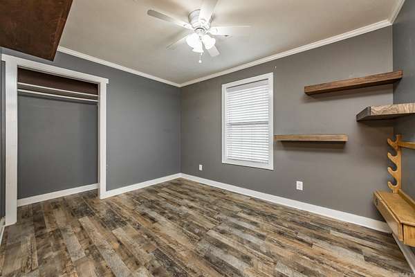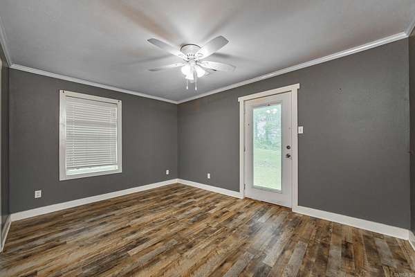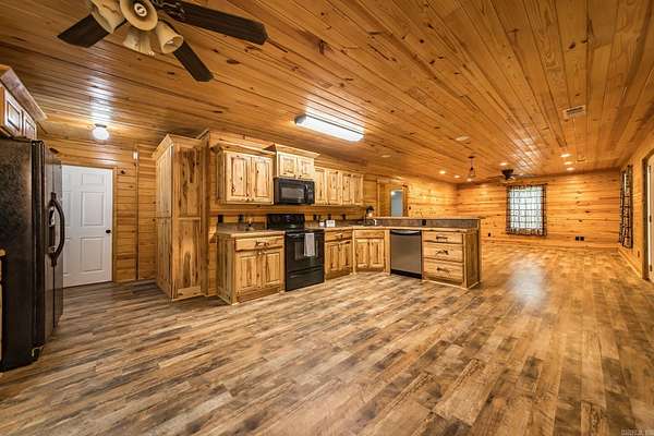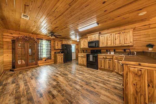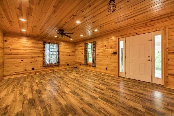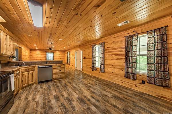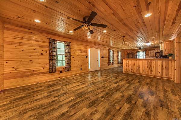 Charming 2 bed, 2 bath home on 2.2 beautiful acres with the perfect mix of space and functionality! Inside, you’ll love the oversized living room featuring stunning custom wood walls and a warm, inviting feel. The open kitchen offers an abundance of custom wood cabinetry, tons of pantry storage, a breakfast bar, and a spacious dining area—perfect for everyday living or entertaining. The primary suite includes a custom tile shower and direct access to the outdoors, adding a private retreat feel. Outside, the property is set up for country living with a workshop with electricity, a fenced area ready for horses, and plenty of room to roam. Bonus: a slab has already been poured with plumbing in place, making it easy to add a new primary suite or expand the home. Don’t miss this one!