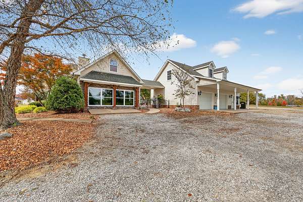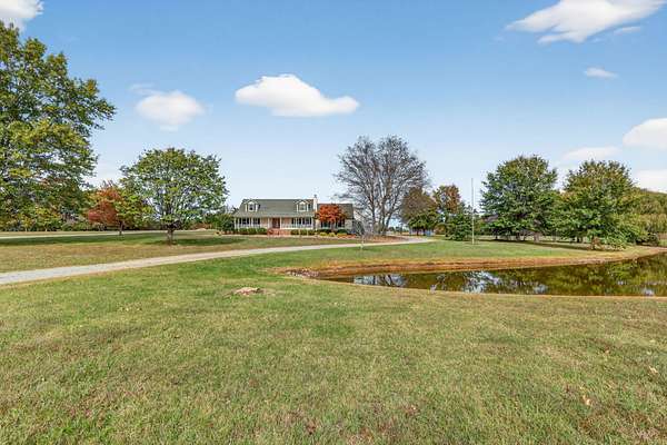 Welcome to this Cape Cod style home on 5 serene acres of countryside retreat. This beautiful 3 bedroom 2.5 bath home offers timeless character with modern comfort offering space, privacy and unique features including a natural light-filled Florida room, detached 2 car garage with over 1200 additional finished square feet not included in home square footage-an oversized bonus room above and generous office space with kitchen and full bathroom. Flexibility for a home business, hobby space or private guest suite/apartment. Outside the home features a fully stocked fish pond, smokehouse and well house and open green space with fenced in backyard to sit under the pergola or around the fire pit. Concrete slab is ready for a future shop supported by its own well water and separate septic system. Location is a short drive into town amenities and minutes to the Nashville or Clarksville. This property is unique and has features you will not find elsewhere.