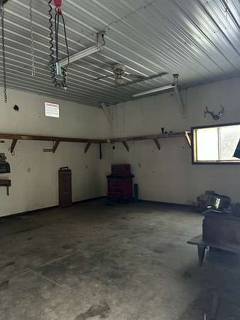 10' outbuilding that includes partial concrete flooring, an insulated and powered workshop, and a separate cold-storage section with a large sliding door for tractors, ATVs, and hunting equipment. The combination of workspace and gathering area makes it an ideal basecamp for your hunting party or weekend projects. A secondary skid-mounted building offers additional room for small-livestock needs, tools, equipment, or seasonal storage.