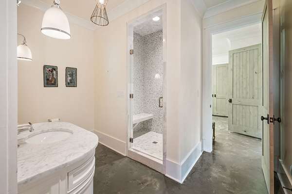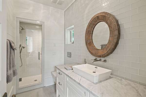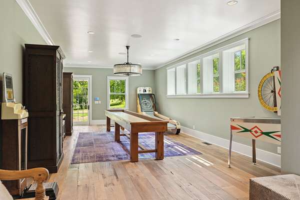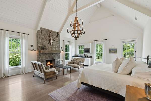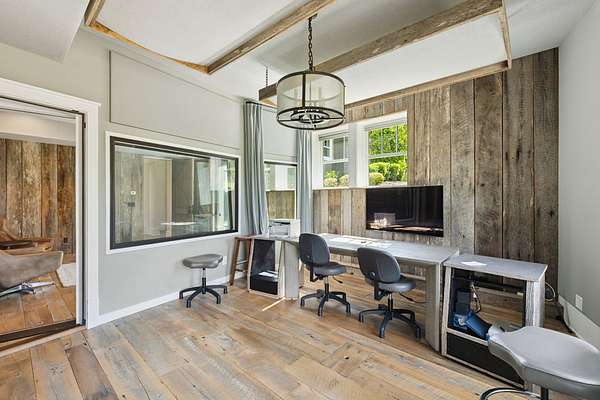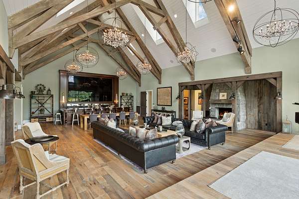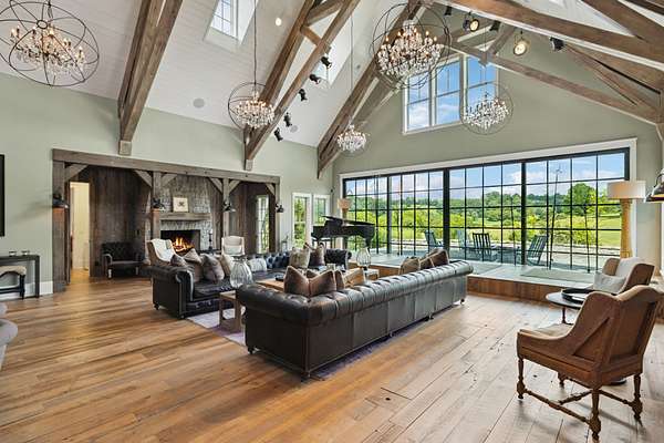 Across the property is the "77" Entertainment Barn, which is nothing short of extraordinary. Designed by architect Eric Stengel, this 5,300 sq. ft. masterpiece combines rustic character with refined luxury. Soaring ceilings frame an open space anchored by a grand imported bar with large video wall, and two stone fireplaces--perfect for both large and intimate gatherings. Two private bedroom suites, each with a fireplace, laundry, and kitchenette, flank the great room, while a game room, full upstairs catering kitchen, gym, bathroom, and oversized 2-car garage provide modern convenience. Adding to its prestige, a Gary Hedden-designed recording studio makes this barn a destination for creativity and entertainment. The "77" is truly one of Leipers Fork's most remarkable spaces.
