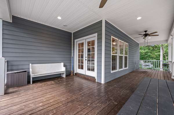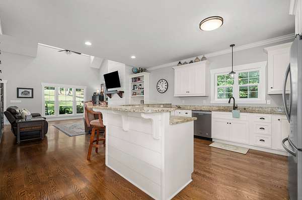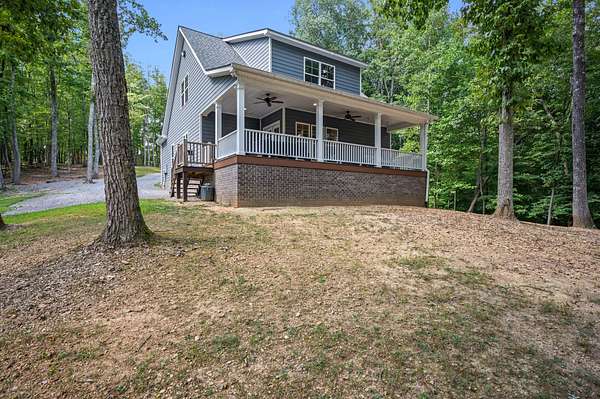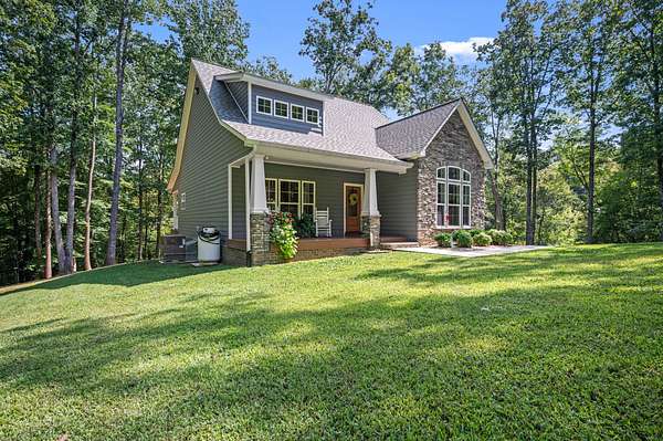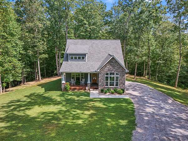 Tucked away on 14.59 mostly wooded acres, this practically new home offers a tranquil retreat surrounded by nature. Step inside to a home filled with natural light and a warm, inviting atmosphere. The spacious living room features vaulted ceilings and a gas fireplace. The large kitchen boasts granite countertops, a large bar adjacent to the living room, and stainless appliances, perfect for both everyday living and entertaining. With every bedroom featuring its own bathroom plus a downstairs half bathroom, this home provides a comfortable and convenient layout for family and guests. Real hardwood floors and tile are throughout the home. Practical features like spray foam insulation, an encapsulated crawl space, Everlast Composite Siding, and excellent well water ensure peace of mind. With distant waterfall sounds, you'll never want to leave the covered back porch. Possible second soil site, an open field, and 1300 ft of road frontage offers potential for additional building sites. Experience the perfect blend of modern comfort and secluded, natural beauty in this one-of-a-kind property.