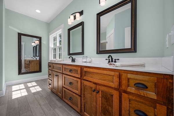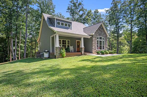 Tucked away on 9 mostly wooded acres, this practically new home offers a tranquil retreat surrounded by nature. Step inside to a home filled with natural light and a warm, inviting atmosphere. The spacious living room features vaulted ceilings and a gas fireplace. The large kitchen boasts granite countertops, a large bar adjacent to the living room, and stainless appliances, perfect for both everyday living and entertaining. With every bedroom featuring its own bathroom plus a downstairs half bathroom, this home provides a comfortable and convenient layout for family and guests. Real hardwood floors and tile are throughout the home. Practical features like spray foam insulation, an encapsulated crawl space, Everlast Composite Siding, and excellent well water ensure peace of mind. With distant waterfall sounds, you'll never want to leave the covered back porch. Possible second soil site, an open field, and 1300 ft of road frontage offers potential for additional building sites. Experience the perfect blend of modern comfort and secluded, natural beauty in this one-of-a-kind property.