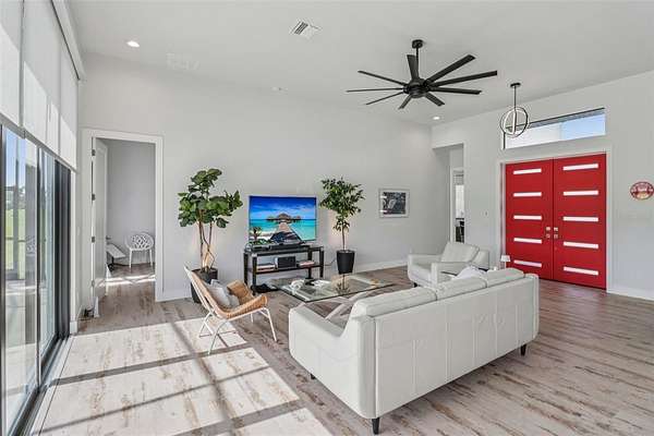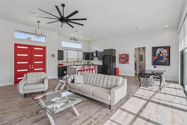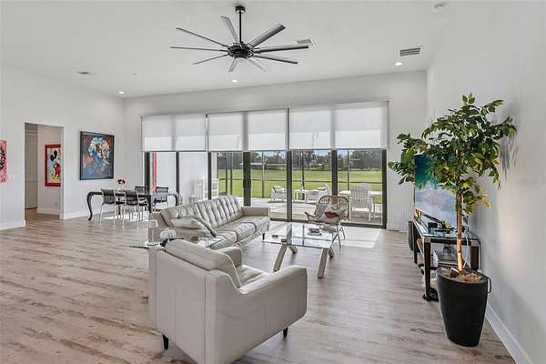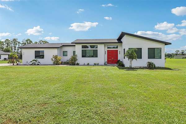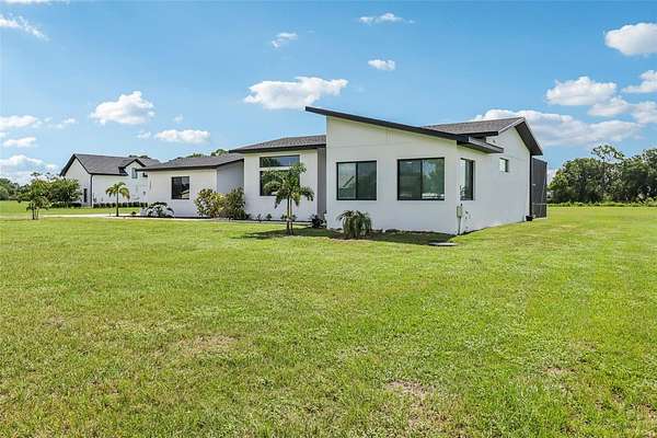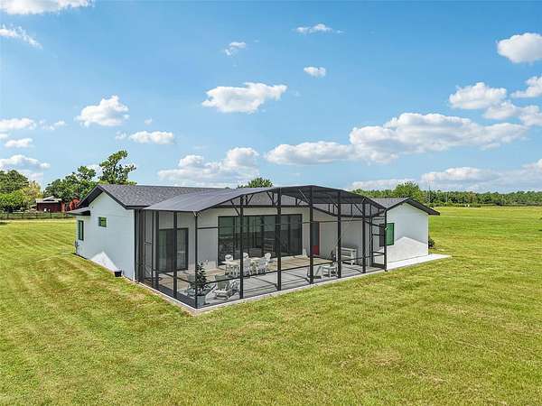 2023 contemporary custom home on over 2.7-acres - waterfront / equestrian zoned property, situated in the gated community of Hidden River Lakes. Build a dock on the 140ft of waterfront and cruise through the Harris Chain of Lakes. Chill in the extensive screened lanai and revel in the privacy, views and vast array of wildlife that calls the Hidden River Lakes community home. The home boasts 3 bedrooms with walk-in closets, 2 full bathrooms and flex / office, all with great proportions. 10-12ft ceilings throughout the home and a wonderfully light and bright living room with open floor plan. High specification kitchen has Real River Rock Stone and River Rock Cabinetry, Champagne Bronze accessories, Black Stainless Appliances & Real Marble stone backsplash. Modern lighting throughout. Huge sliders flank one wall of the living room exposing the huge screened lanai and the open views across the property and down to the water. This home gives enormous flexibility - fence your self a paddock and stable your horses on your property / purchase the second parcel for a second dwelling for family or investment / build accessory buildings for your toys and bring the boat and RV to your homesite. This home is economical to run with Sprayed Insulation for high efficiency and low power bills! Windows are Double pane with additional heat layer that serve to block out sun during day. Floors are Old Chicago Style (abandoned warehouse), waterproof and durable. Hidden River Lakes enjoys a great central position; just down from Deer Island Golf Club, a few miles from the Historic Town of Mt Dora and still under an hour to the International Airport, Disney World and all of the main Central Florida attractions. This is one of those hidden gem communities you have to see to appreciate. No 5ft lot lines here!!