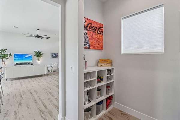 - Ceiling Fans(s), High Ceilings, Kitchen/Family Room Combo, Open Floorplan, Primary Bedroom Main Floor, Solid Surface Counters, Split Bedroom, Thermostat, Vaulted Ceiling(s), Walk-In Closet(s), Window Treatments