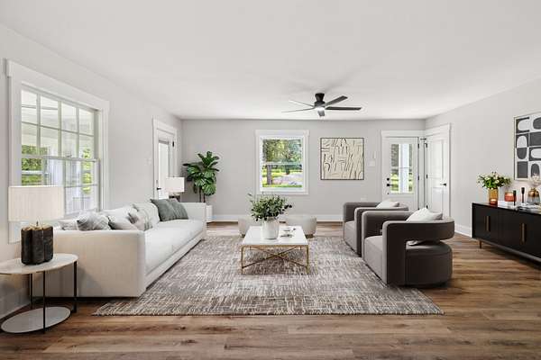 Experience the freedom of country living on this private retreat set on over 3 acres. The fully renovated home features an open floorplan ideal for family living and entertaining. Taken down to the studs and completely redone, the house boasts brand-new HVAC, insulation, plumbing, lighting, new cabinets with quartz countertops, stainless steel appliances, and durable waterproof LVP flooring. The spacious primary suite includes a large walk-in closet, while the sunroom, oversized laundry room, and mudroom add everyday functionality and comfort. A walk-in pantry and modern finishes throughout make this home both practical and polished. The detached two-car garage provides versatile space for a workshop or additional storage--perfect for hobbies, projects, or play. With county water plus a working well, this property offers flexibility and self-sufficiency. Peaceful, private, and move-in ready, this is rural living designed for lasting comfort and privacy.