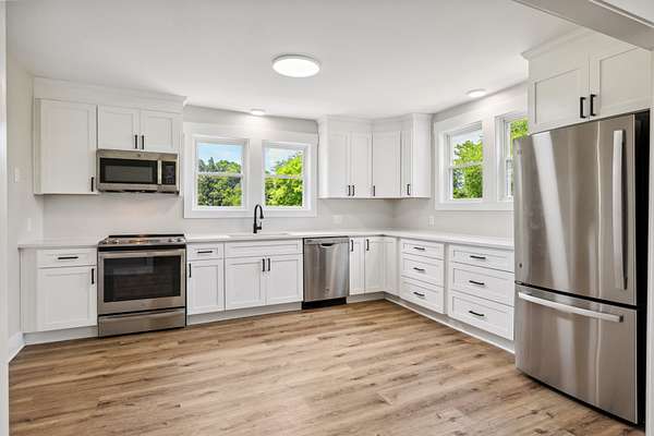 - Dishwasher, Electric Range, Microwave, Refrigerator, Stainless Steel Appliance(s)