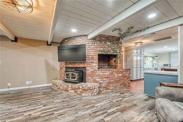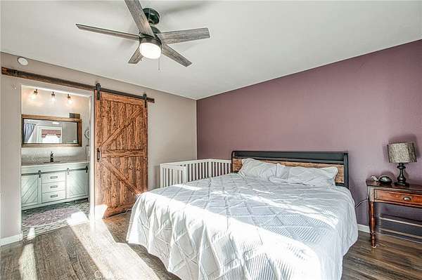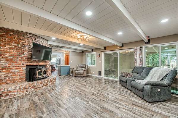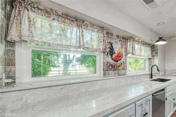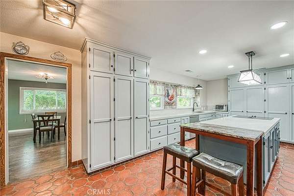 Set on 4.9 acres just outside of town, 3389 E Olive Ave offers a setting that feels a little more open, a little quieter, and just far enough removed without being disconnected. The home spans 2,249 sq ft with 3 bedrooms, and 2 fully renovated bathrooms. Inside, original hardwood floors and brick accents bring a sense of character, while the kitchen has been thoughtfully updated with a large center island, custom cabinetry, and quartz countertops carried throughout the home.