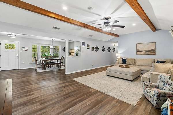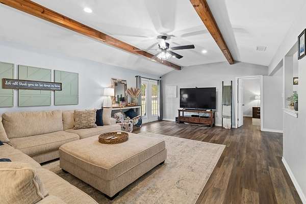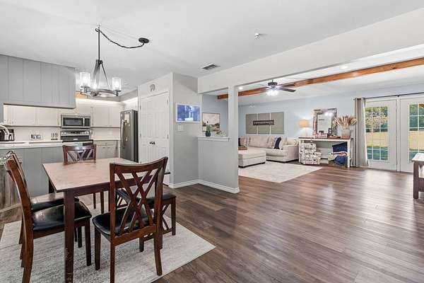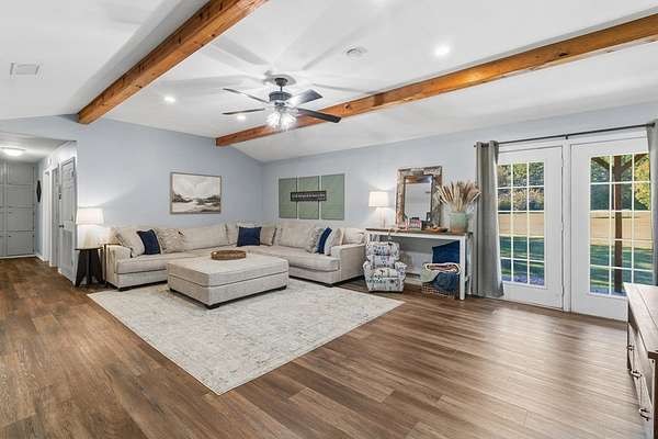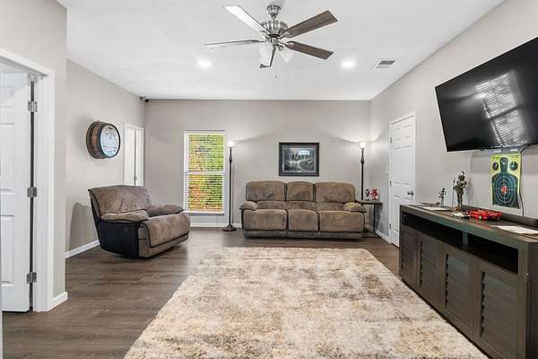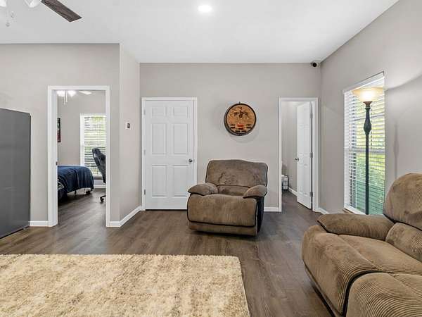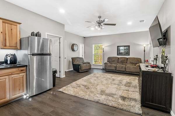 REDUCED! Relax & work from home! Spectrum 1gig fiber installed & pick from 2 living quarters! Peaceful country living on 5 beautiful acres just past Neches Elementary on FM 19. This fenced & gated property has a rustic log-style home featuring full-length front & back porches for entertaining or simply enjoying sunsets & watching deer. Inside, is a more traditional, light-filled interior with an open layout that feels warm and welcoming. This 3bedroom, 2bath home offers a spacious living area & kitchen flows into a lovely dining space with a beautiful bay window . Property has a matching 1,152 sq. ft. fully heated & cooled garage w/ living quarters for flexibility: includes its own kitchen area, living room, bedroom, and bath, ideal for a mother-in-law setup, guest overflow, or even rental income. Underground electric & water has been run to various areas for future: shop, RV hookups, etc.. The land is level & manicured with ample room to expand, the property offers both tranquility & opportunity. Enjoy the benefits of someone else's hard work or create your own country retreat, this one has space, privacy, and charm in every direction.