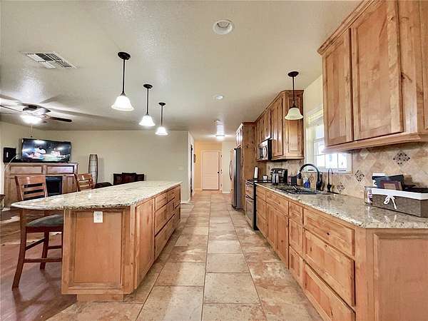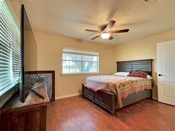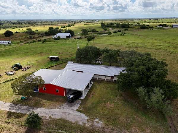Experience the best of South Texas country living in this beautiful ranch property located in Beeville, Texas. Situated on 47 acres of scenic land, this 3-bedroom, 2-bathroom home offers approximately 2,150 square feet of comfortable living space surrounded by mature oak trees and peaceful natural surroundings. Inside, the home features granite countertops, a large pantry, and spacious bedrooms designed for both comfort and functionality. Large windows invite in natural light and offer serene views of the surrounding landscape. The land is thoughtfully set up for ranching and recreation, with cross-fenced pasture ideal for horses and cattle, as well as a tank that attracts abundant wildlife-perfect for dove hunting. A water well services the property, with lines running to multiple troughs, making livestock management convenient and efficient. Additional improvements include a barn/workshop with two rooms already plumbed and an overhead door, offering endless possibilities for projects, storage, or conversion. A smaller barn with horse stalls adds even more functionality for equestrian use and a Gun Range is located on the property as well. The property is secured with an electric entrance gate, providing both privacy and ease of access. Whether you're looking for a working ranch, recreational retreat, or peaceful country homestead, this Beeville property offers it all.