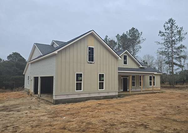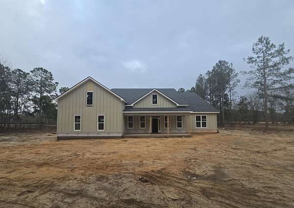 The Herndon Alt II Plan by Poole Residential is a beautiful 4BR 3/BA farmhouse styled home nestled on 5.82 acres in the heart of Aiken's horse community. Exterior features include board and batten hardie siding on the front of the home, stone watertable, side entry garage, covered front and rear porches, architectural shingles and 8 ft. garage door Inside the open split floor plan you will find a spacious 22'x17' great room with stone surround wood burning fireplace, a gourmet kitchen to include cooktop, farmhouse sink, custom vent hood, microwave/oven combo, granite countertops and oversized island. A nice sized breakfast area, formal dining room with coffered ceiling, spacious 21'x15'primary bedroom w/en-suite with full tile shower, two additional bedrooms which share a full bath. with tile walls in shower. The 4th bedroom/bonus/in-law suite is huge at 19'x13' and has a private bath with full tile shower and WIC. There is also an 11'x14' flex room as you enter the home which can be utilized as an office or 5th bedroom. Luxury vinyl plank flooring throughout main living areas. Too many upgrades to list.