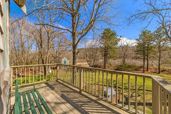 There is a rare, magical quality to 339 Coles Neck that is hard to find, especially at this price point. Set on a generous .72-acre lot, the property feels like the keeper's house for a private park. With mature trees and lush, perennial landscaping, this home offers seclusion and natural beauty while remaining only moments away from the heart of Wellfleet. Designed to be enjoyed year round, the interior is bathed in natural light, the many windows framing views of the grounds and evolving Herring River Estuary. Whether watching fireflies dance in midsummer or enjoying the cozy glow of the propane fireplace during a snowfall, this is a true year-round retreat. The outdoor space is a masterpiece, featuring a massive deck and bluestone patio, acting as a spacious second living area. Ideal for alfresco dining, complete with a high-end, dedicated gas-line grill. The perimeter is beautifully defined by a classic split-rail fence, maintaining an open connection to the landscape. Two post-and-beam sheds offer flexible use as a studio, office, or workshop. Significant expansion potential exists with a with an existing 3-bedroom septic system.