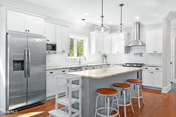 Exquisite custom-built spec home, nestled on 2.75 private acres. Surrounded by a 300-acre conservation area, this property offers peace and serenity! A 2,300 square foot home, with an additional 600 square feet in the finished walk-out basement. Beautiful hardwood floors, triple crown molding, and high-end finishes throughout. The living room offers a warm and inviting atmosphere with a fireplace featuring a tile surround and custom wood mantle. The spacious kitchen includes ample cabinetry, honed granite countertops, tile backsplash, and a large island with storage and seating. The dining room is bright and open, with large windows and a sliding glass door that leads out to the back deck. The spacious primary suite features a tray ceiling. Convenient second-floor laundry room with a utility sink. The finished basement boasts additional living space, a full bathroom, and storage. Sliding glass doors in the basement lead out to the backyard. This incredible home is equipped with a whole-house generator!