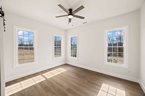 Set on five peaceful acres, this newly built home invites a slower, more thoughtful way of living. The white board-and-batten exterior with modern black accents feels fresh yet timeless, while warm wood details guide you inside. Sunlight moves across wide-plank floors into an open living area anchored by a quiet, welcoming fireplace. The kitchen sits at the center--spacious, functional, and ideal for gathering--complete with a generous island and a pantry that feels more like a hidden prep room. Bedrooms are calm and tucked away, and the bathrooms offer a retreat with tile floors, a large tiled shower, and a soaking tub. A versatile bonus room upstairs waits for your own purpose. Step onto the covered front or back porch and take in the quiet sweep of land around you. This is a home designed for everyday ease, with thoughtful details that make each moment feel grounded and comfortable. Schedule your showing today!