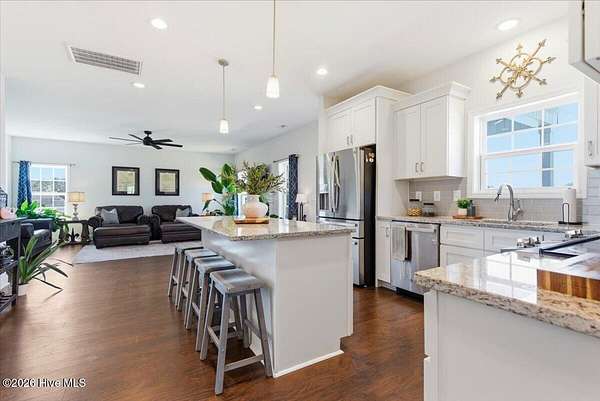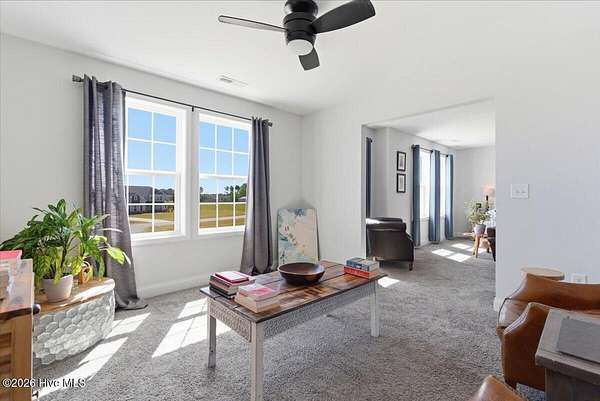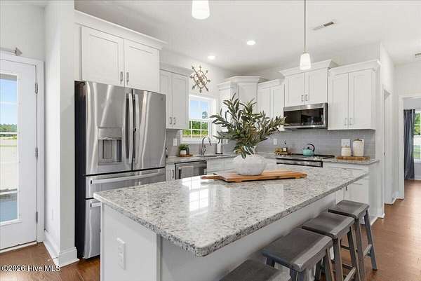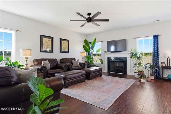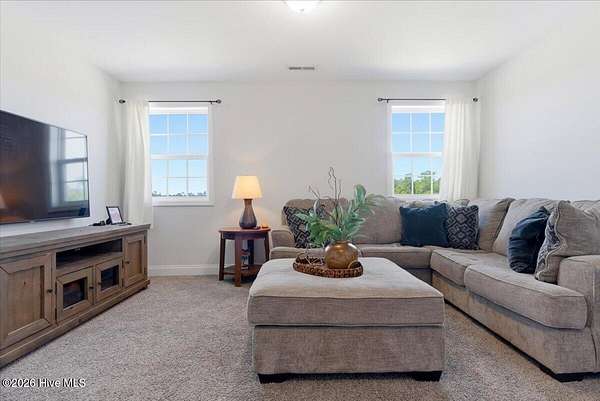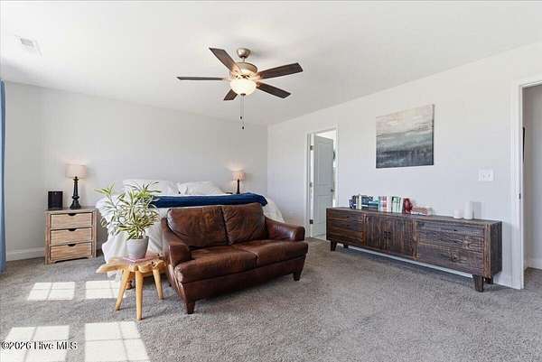 Enjoy the space and freedom of country living on 2.55 acres, perfect for horses, goats, and chickens, with no city taxes and no backyard neighbors for added privacy. All of this just minutes from Carolina Horse Park. This newer home offers over 2,800 square feet with an open layout designed for both everyday living and entertaining. The kitchen is the heart of the home, featuring a large island, double oven, soft close cabinetry, and not one, but two pantry closets. A main level bedroom and full bath create the perfect setup for guests or multi generational living, while a flexible front room works beautifully as a home office or second living space. Upstairs, the spacious primary suite includes a large sitting area, soaking tub, tiled shower, and an oversized walk in closet that actually lives up to the hype. You will also find 2 additional bedrooms, a full bath with double vanity, laundry room, and a large bonus room. A 12x32 custom shed offers potential for a future barn/stall or workshop, and the John Deere mower conveys so you are ready to enjoy your land from day one.