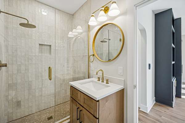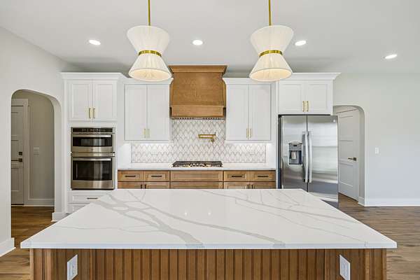 Luxury new construction by Rizen Homes on 5 private, acres. This 4,221 sq ft home offers exceptional craftsmanship, premium finishes, and a spacious layout. The interior features custom cabinetry, designer lighting, a large quartz island and countertops, LVP flooring, tile‑finished bathrooms, a stone fireplace, hidden walk‑in pantry, wet bar, and generous walk‑in storage. The home includes three extra‑large bedrooms, five full baths, several large flex rooms, and a three‑car garage. The primary bedroom will showcase a wood-accent ceiling, large walk-in closet, and ensuite bathroom. Additional upgrades include 400‑amp electrical service and a whole‑home water purification system. Exterior highlights include mature trees, eave lighting, and abundant privacy. Some photos may be AI‑enhanced or from a previous Rizen Homes build and are provided as examples of the builder’s craftsmanship. Construction is currently at trim and flooring phase. No HOA and no restrictions! Don't miss your opportunity to own this beautiful home.