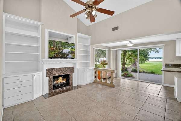 Welcome to this beautiful lakefront rental home on Lake Joanna in Eustis. Offering stunning water views, water access and a peaceful lifestyle, this residence combines comfort and charm in one of Central Florida's most desirable locations. Inside, you'll find a spacious and inviting floor plan with bright living areas designed to maximize natural light and showcase the backyard and lake beyond. The living room has a gas fireplace with built in bookshelves. The kitchen is well-appointed with gas range, ample cabinetry and counter space, making it both functional and stylish for everyday living. The bedrooms are generously sized, providing comfortable retreats, one with walk in closet and washer/dryer and the other is set up as an office with built in desk. The bathroom features thoughtful finishes with dual sinks, soaking tub and walk in shower. Step outside and enjoy the private outdoor patio and large backyard that leads directly to the water's edge of crystal clear, spring fed Lake Joanna -- perfect for fishing, kayaking, boating, or simply relaxing and taking in the view. Enjoying quiet evenings at home watching some of the most beautiful sunsets Central Florida has to offer! Located on scenic East Lake Joanna Drive, this home offers the best of both worlds: a tranquil lakeside setting with easy access to shopping, dining, and historic downtown Mount Dora and Eustis. Easy access to major roads, making an easy commute or visiting Orlando, International airport, amusement parks. With its combination of natural beauty and convenient location, this property is ideal for those seeking the lakefront lifestyle.