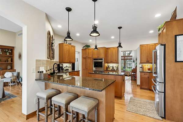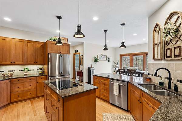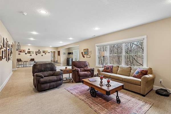 Spectacular Executive Walkout Ranch nestled on a scenic wooded acreage in the highly desirable Mill Creek area, offering privacy, space, and peaceful setting, just minutes from Adel and I-80. Backing to mature trees, this property provides a rare setting with frequent wildlife sightings and serene views in every season. The main level features approximately 2200 square feet of well-designed living space with large windows that bring in natural light & showcase the surrounding landscape. Beautiful wood floors throughout, with tile in bathrooms & laundry. The kitchen has been refreshed with updated appliances, fixtures, paint, & opens to inviting living & dining area ideal for everyday living & entertaining. You'll LOVE relaxing on deck with breathtaking views of mature trees & wildlife. The finished walkout lower level expands with approximately 1900 square feet, spacious family/rec room, bedroom, full bath, wet bar, & flexible space for guests & hobbies. Walkout to paver patio & covered patio, wired for hot tub, & enjoy the private wooded backyard. Oversized three car garage with storage area. Geothermal, new roof (2023), irrig, radon mitigation system. A rare opportunity to own a private, executive walkout ranch, 1.5 acreage, in highly desirable location! All information obtained from seller and public records.