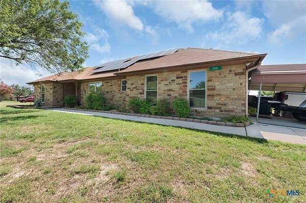 PRICE REDUCED!! This 3bed/2bath brick home located on a corner lot with circular driveway has so much to offer for a family wanting a quiet neighborhood in the country but only minutes away from the city!! Enjoy this spacious home approximate 1760 square feet with tile entryway, office/formal dining, large family living with fireplace to enjoy with the family on the cold winter nights, spacious kitchen with eat in dining, plenty of cabinets, solar panels are on the front and right side of the house installed 2018, new windows installed 2024, side entry garage with garage door opener and 2 remotes plus a metal carport and detached workshop/garage is 47x26 installed 2020 and has electricity, enclosed patio 16.11 x 16.5 has a hot tub with heat and filter ,AC Rheem, condenser and AC replaced 2020, Heat Barrier in attic installed 2024. Mother in law floor plan. Show this home to your buyers and they will appreciate the home and neighborhood!! Seller is in the process of removing wallpaper and painting the interior, plus refrigerator, dishwasher and microwave (Whirlpool) will be replaced December 2nd to match range which was replaced 1 year ago!! Seller has estimate for replacing carpet before closing!!