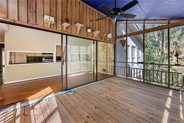 Tucked quietly beyond the gates and set on nearly 2 acres of mature hardwoods, 3391 Ridgewood is the kind of property that rarely comes to market, and even more rarely comes back around. The level of privacy, scale, and natural setting here is getting harder and harder to find this close in. Surrounded by established estate properties, the setting feels removed in the best way. Yet you're minutes from Chastain Park, top private schools, premier clubs, and everything Buckhead, Sandy Springs, and Vinings have to offer. Easy access to I-75 keeps you connected without ever giving up the calm. The approach tells you everything you need to know. A long gravel drive leads to a home that feels grounded, intentional, and completely at ease in its surroundings. It doesn't try to impress, it just does. Inside, the architecture creates the experience. Soaring ceilings, expansive glass, and a two-story living space bring in natural light and frame the landscape from every angle. The outdoors isn't an after thought, it's part of how you live here. The screened porch is where this property really delivers. Elevated, private, and surrounded by trees, it's the kind of space you'll use every day for morning coffee, dinner with friends, or a quiet reset at the end of the day. The current layout offers 4 bedrooms and 2 baths with an easy, livable flow. Comfortable as it is, with clear potential for someone thinking beyond today. The lot, the topography, and the surrounding homes create a real opportunity. Renovate and elevate what's here, or build something that fully takes advantage of the setting. Either way, you're investing in a location where opportunities like this are becoming increasingly limited.