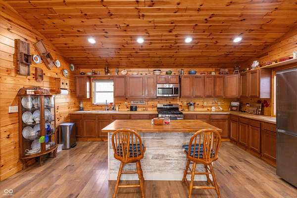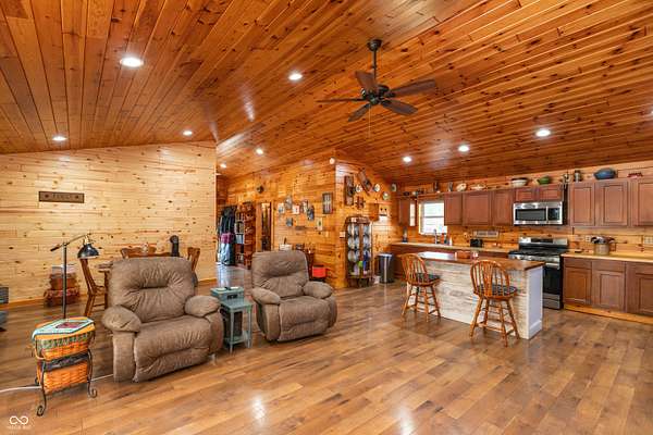 Tucked away on 30+ acres, this cozy home is everything you've been dreaming about-part wooded, part open space, with your lake out back and plenty of wildlife (see photos). Built in 2015 1-bedroom, 1-full bath, great room with open kitchen dining and living room, and outside there is wrap around covered porch, open patio for enjoying the outdoors and sipping coffee, barn for your outdoor storage and big boy toys, and RV storage. Perfet location to see wildlife or hunting, hiking your own land, or just soak in the quite away yet located just 25 minutes from Seymour, Columbus and Nashville. If you've been dreaming for a get-away-in-the-woods escape pack your bags and get ready to fall in love with your very own slice of country.