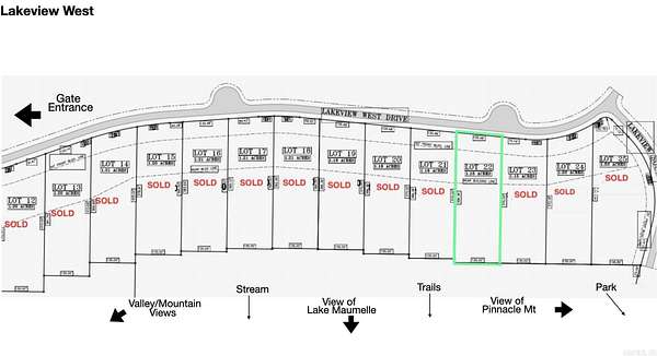 Spectacular, colorful skies at sunrise and sunset daily! Welcome to the gated Lakeview West community. Build your dream home on this stunning 1.2-acre ridgetop lot, offering the rare combination of a large, flat backyard and million-dollar views. Enjoy breathtaking vistas in every direction--overlooking sprawling Lake Maumelle, majestic Pinnacle Mountain, and the misty foothills of the Ouachita National Forest. The exclusive Alotian Golf Course and lake marina are just minutes away. A wonderful walking neighborhood! From the corner of the block, take in glimpses of Pinnacle Mountain and Lake Maumelle, then stroll through wooded trails along a meandering stream in the heart of this secluded enclave of beautiful estate homes. Lakeview West will soon add a 60-acre park featuring luxury amenities, including tennis courts, football and soccer areas, basketball courts, additional miles of walking trails, and a community bonfire area. This lot is an exceptional find--offering incredible views along with the luxury of a spacious, flat backyard. Even more rare, it is the very last ridgetop lot available along Lakeview West Drive, making this a truly limited opportunity! Text me for details!