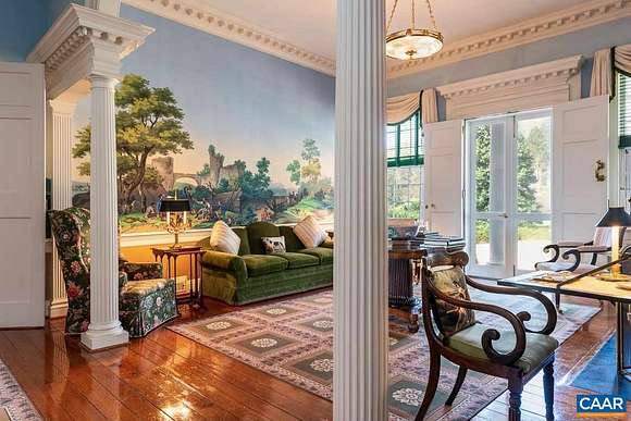 Est $63,317/moNestled in the foothills of the Blue Ridge Mountains is this Palladian inspired masterpiece called Edgemont. Surrounded by 572 acres of rolling Virginia farmland, with the Hardware River running through the lush fields, is a home whose design is reputed to be the only remaining private residence attributed to Thomas Jefferson. Complete with tennis court, pool, pool house, and guest houses. Fiber internet throughout the property now. The land is not under conservation easement.