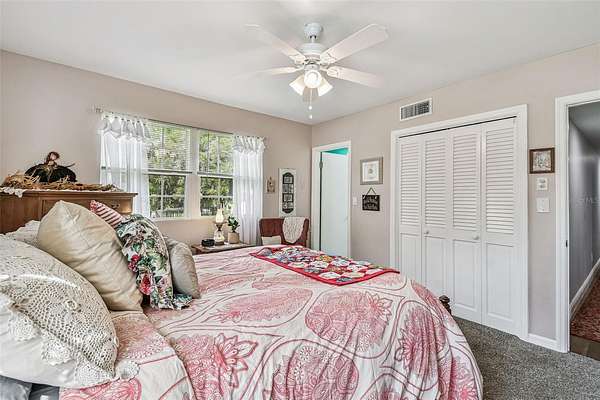 Ceiling Fans(s), Primary Bedroom Main Floor, Solid Wood Cabinets, Stone Counters, Vaulted Ceiling(s)