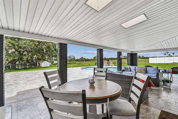 Your private oasis near the Heart of Dade City, tucked away on just over 2.5 acres, yet only minutes from downtown Dade City and the exciting new Double Branch Master Planned Development. Discover 33937 St. Benedict Rd in charming San Antonio. This one-of-a-kind, move-in-ready property offers the perfect balance of peace, privacy, and convenience. Outdoor living at its finest, step out to the expansive travertine lanai-partially covered for year-round comfort-where you can watch the big game, fire up the grill, or bask in the sun before cooling off in your sparkling pool. The property is framed by beautiful oak trees and designed for all your hobbies, from homesteading to recreation. Enjoy fresh harvests from your LEMON and BANANA TREES, gather eggs from your own CHICKEN COOP (chickens included, if you wish!), or put your tractor to rest under the covered POLE BARN. A separate SHED provides even more storage for tools and toys. And with no nearby neighbors, you'll love the serenity of being the only home on the street.
