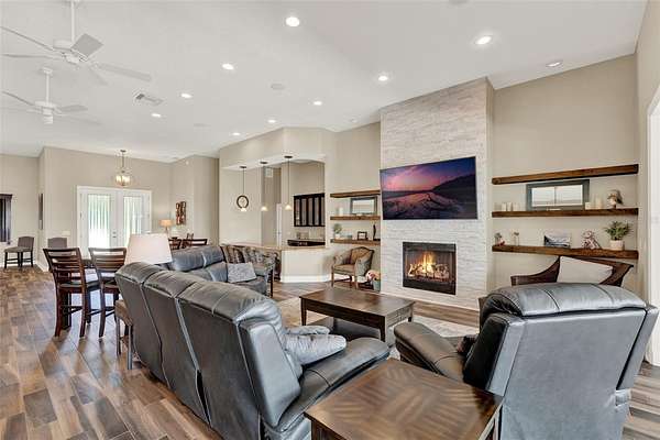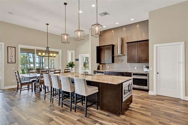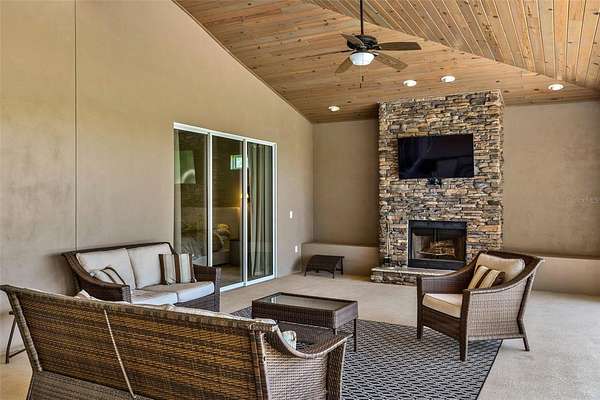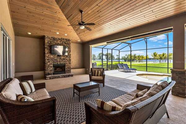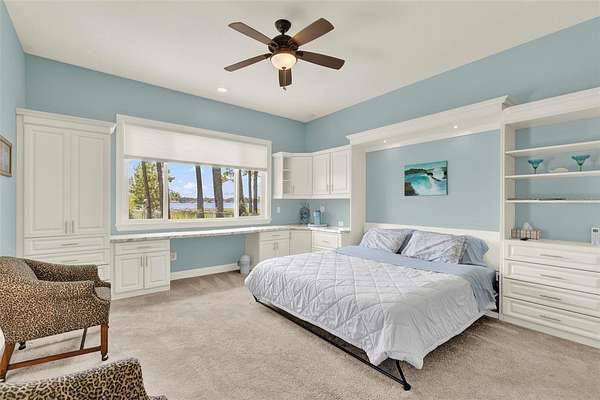 This Central Florida waterfront estate simply has it all to offer. Whether you love magical sunsets or water activities, this is the perfect home for you. Tucked away from the road by a gated entry and situated on 3.5 acres on the sought after spring-fed, white sand bottom Lake Joanna, this home boasts 5,032 square feet and features 5 bedrooms with 5 full and 2 half baths. This home offers an open floor plan and an abundance of natural light all throughout. A wall of glass sliders help to provide a true indoor/outdoor living feel, seamlessly transitioning out to 2900 square feet of lanai space that features an outdoor kitchen, wood burning fireplace, heated saltwater pool, and 180 degree breathtaking lake views! The primary suite/wing is located on the first floor of the home along with two other en-suite bedrooms. Stepping out to the lanai will lead you to a separate in law quarters with pool access and waterfront views. Bonus room upstairs features double closet spaces and a full bath. Additional features include: 3+ acres of privacy, oversized ADA compliant doorways, double ovens, wet bar with wine fridge and ice machine, dock with boat lift, double jetski floating dock, 3 car garage, 26x24 storage shed with 2 roll up doors, security system, secure gated entry, secondary washer dryer hookup in the primary suite. Satellite internet, ceiling surround sound speakers throughout the house with Denon receiver. This home is 1 mile distance from retail centers and 3 miles to the 429. 3.5 miles to downtown Mount Dora. 180 degree western sunset view. 100 feet of lake frontage. NO HOA. On the border of Mt Dora. Lake Joanna is a 335 acre spring-fed private lake located in unincorporated Lake County. Don't miss out on the opportunity to own a piece of lakefront paradise. Call to schedule your private showing today!