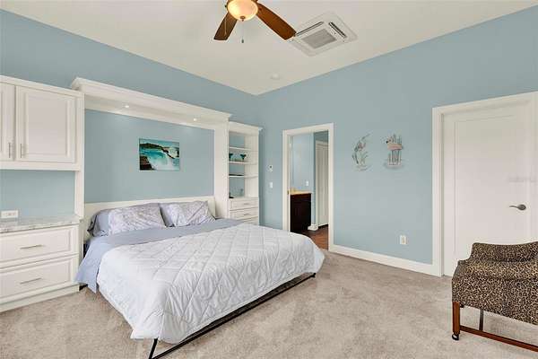- Attic Ventilator, Ceiling Fans(s), Eat-In Kitchen, High Ceilings, Kitchen/Family Room Combo, Open Floorplan, Primary Bedroom Main Floor, Stone Counters, Thermostat, Tray Ceiling(s), Walk-In Closet(s), Wet Bar