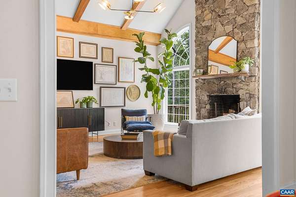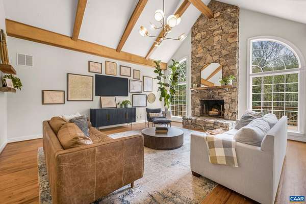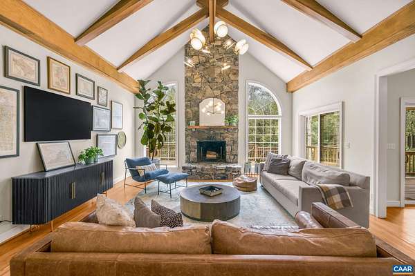 Tucked away on over 9 private, picturesque acres is this distinguished Waverly home. The original developer reserved this parcel for himself and it is arguably the finest in the neighborhood, complimented by a remarkably distinctive 4 bed/3.5 bath house. Take in the views and sounds of Rocky Run Creek and the manicured woods around it yet also enjoy the benefits of a neighborhood in the Ivy School District. The current owners spent over $400K creating level, open lawns in front and behind the home and upgrading systems like drainage & an encapsulated crawl space. Please see the extensive improvements list under the documents tab. The home features soaring ceilings, extensive stone and reclaimed wood detailing, a large gourmet kitchen, 1st floor primary with huge bath and private deck overlooking the views. Abundant storage and room to expand in the easily accessed attic & unfinished basement (w/ rough-in for a bath). Truly a RARE find: Level, open lawns in a supremely private, yet neighborhood setting 8 minutes to Ivy Elementary School!